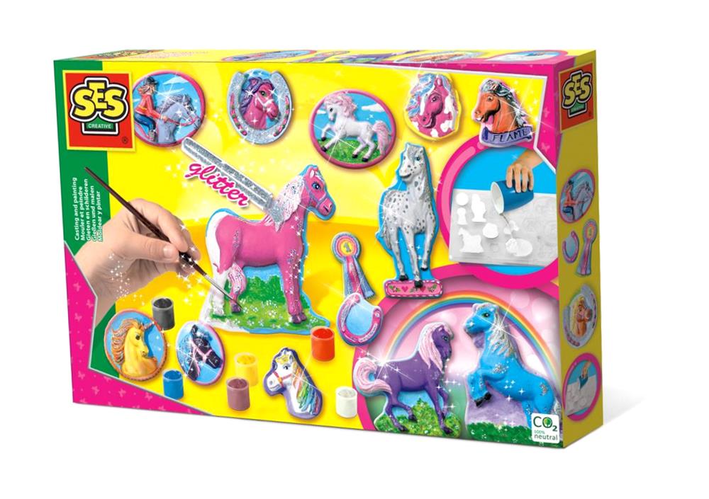 Гипсовые слепки сделать самому. Большая форма с 14 узорами для изготовления рельефов с мотивом лошади. В набор также входят разноцветные краски, блестящие блестки, кисточка и штукатурка.