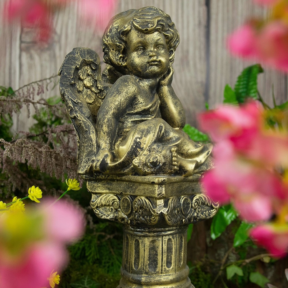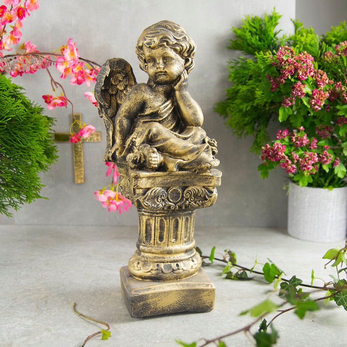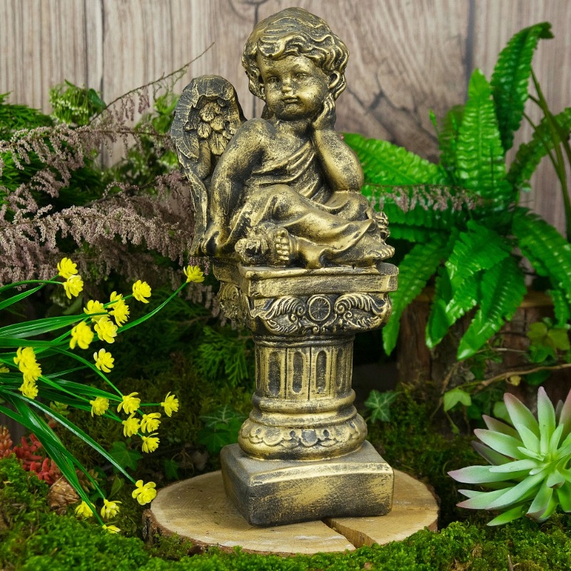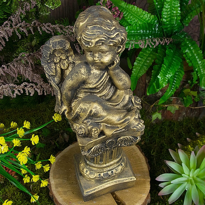 Садовая фигурка из гипса декоративная, надгробие в форме ангела - позолота