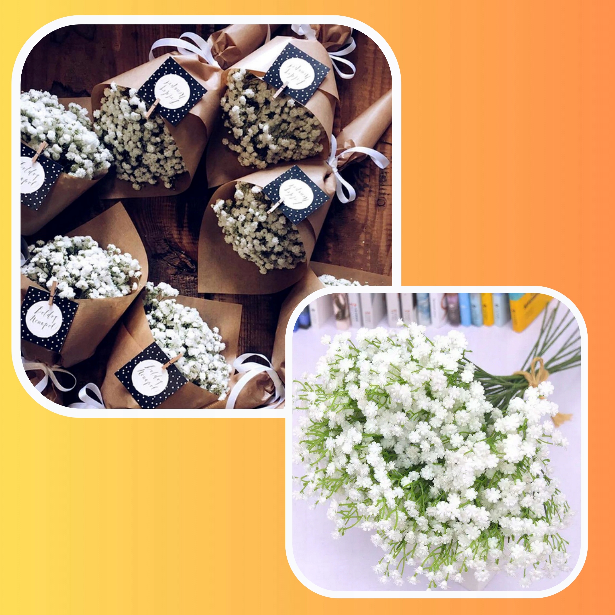 GIPSOWKA ТРАНСФЕРНЫЙ БУКЕТ ИСКУССТВЕННЫЕ ЦВЕТЫ СВАДЬБА x6