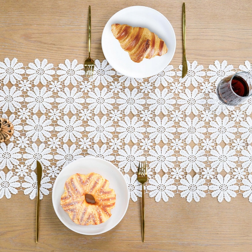 Guipure Tret на столе серой скатерть белая кружева 40x90 Элегантная открытая работа h1>