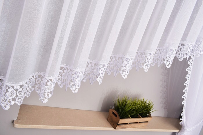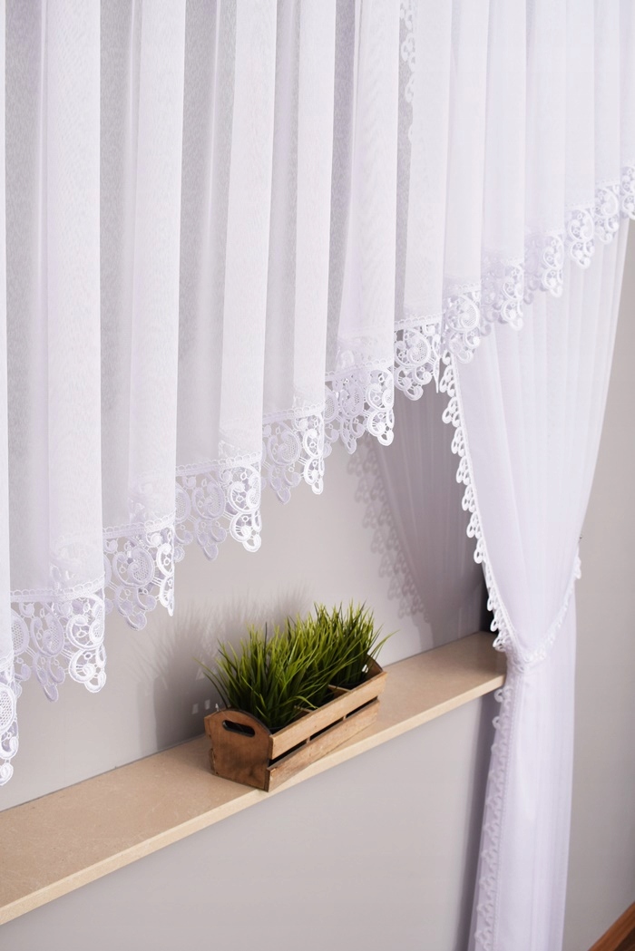 - Предмет продажи — гипюровая бейка белого цвета для штор шириной 10 см.