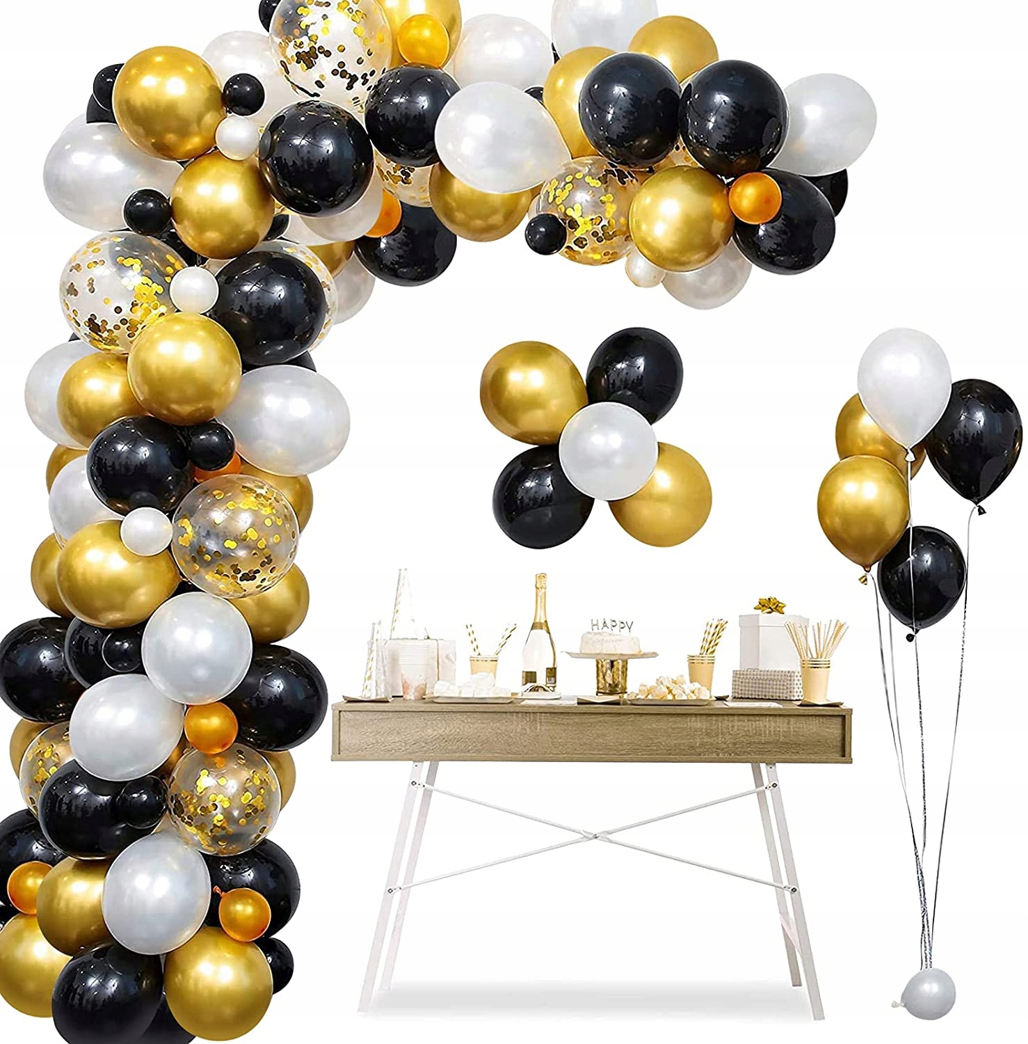 GIRLANDA BALONOWA 120SZT KONFETTI ZŁOTA CZARNA 5m URODZINY PANIEŃSKI ŚLUB