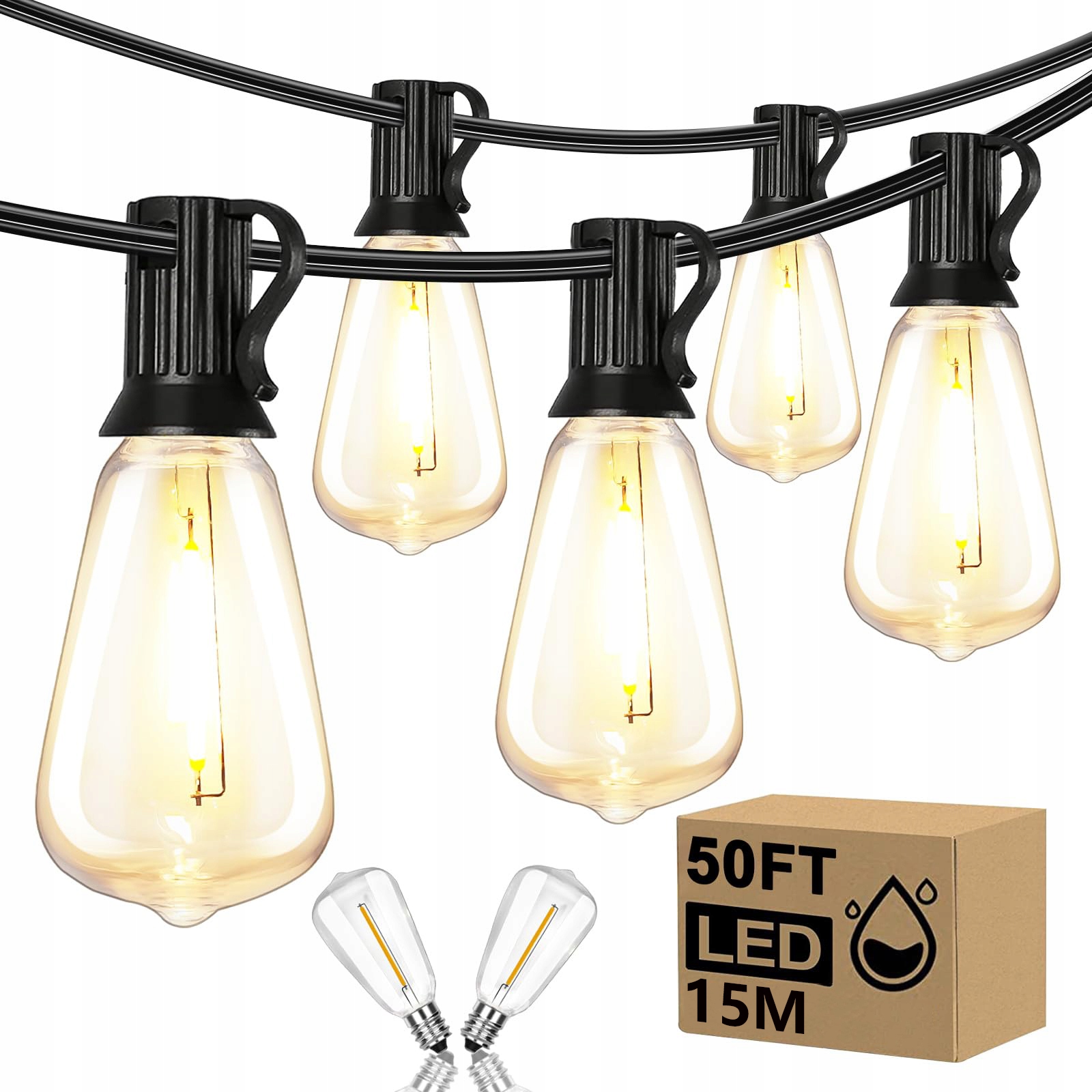GIRLANDA ŚWIETLNA OGRODOWA 15M+52ŻARÓWKA LED CIEPŁA ZEWNĘTRZNA WODOSZCZELNA