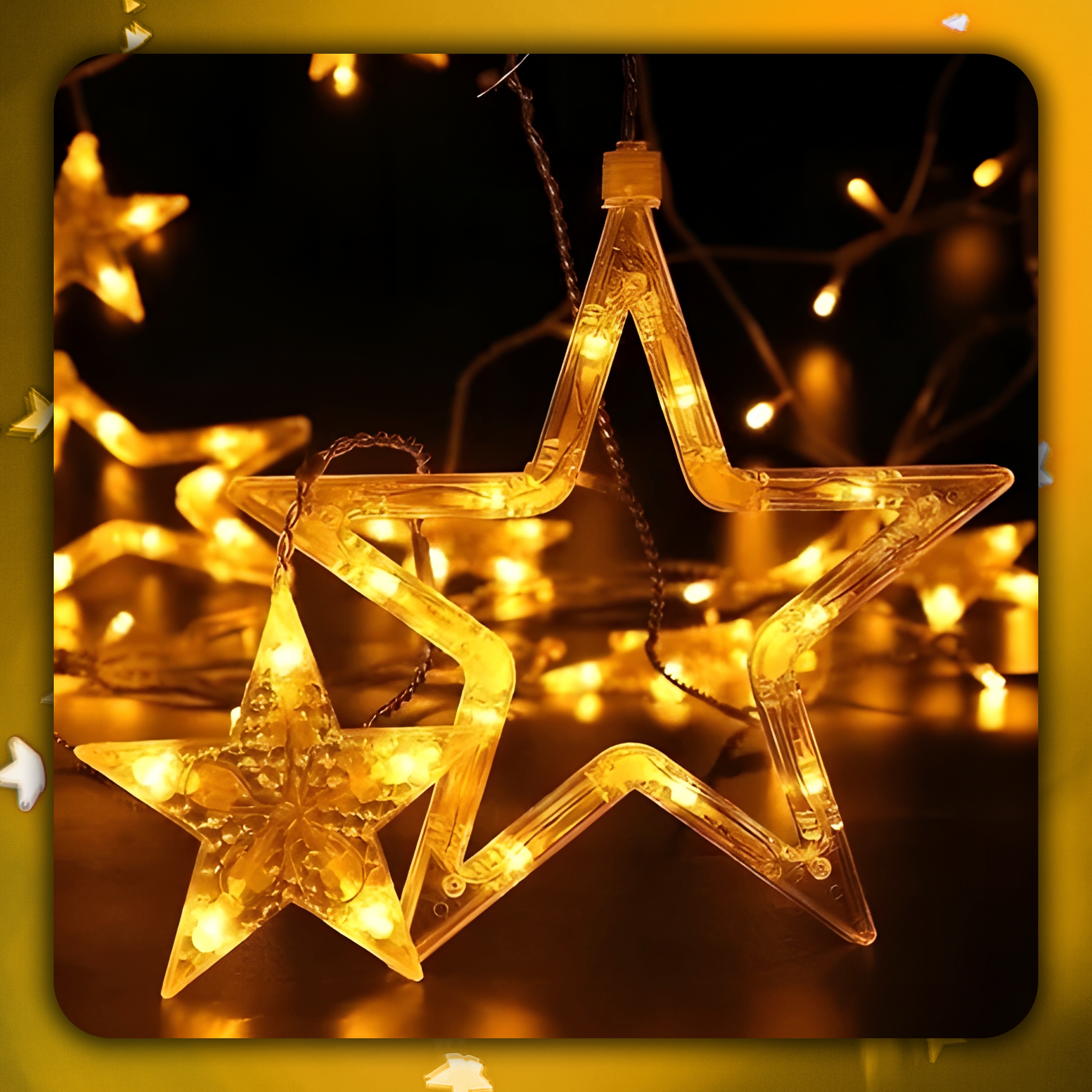 GIRLANDA ŚWIĄTECZNA GWIAZDKI LED BIAŁY CIEPŁY KURTYNA ŚWIĄTECZNA NA OKNO