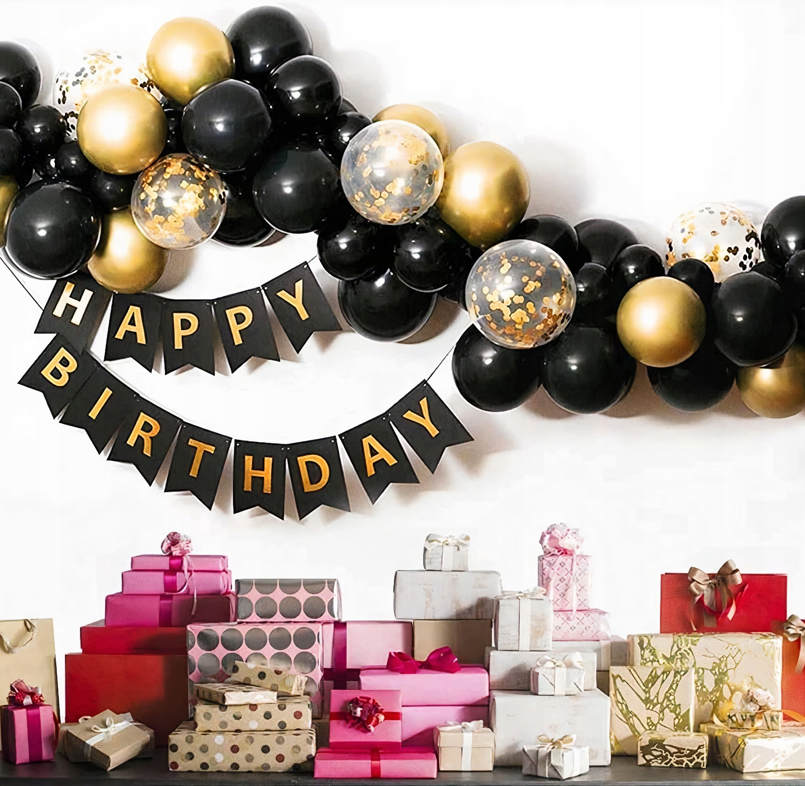 ГІРЛЯНД НАБІР ПОВІТРЯНИХ КУЛЬ І БАНТ ЧОРНЕ ЗОЛОТО