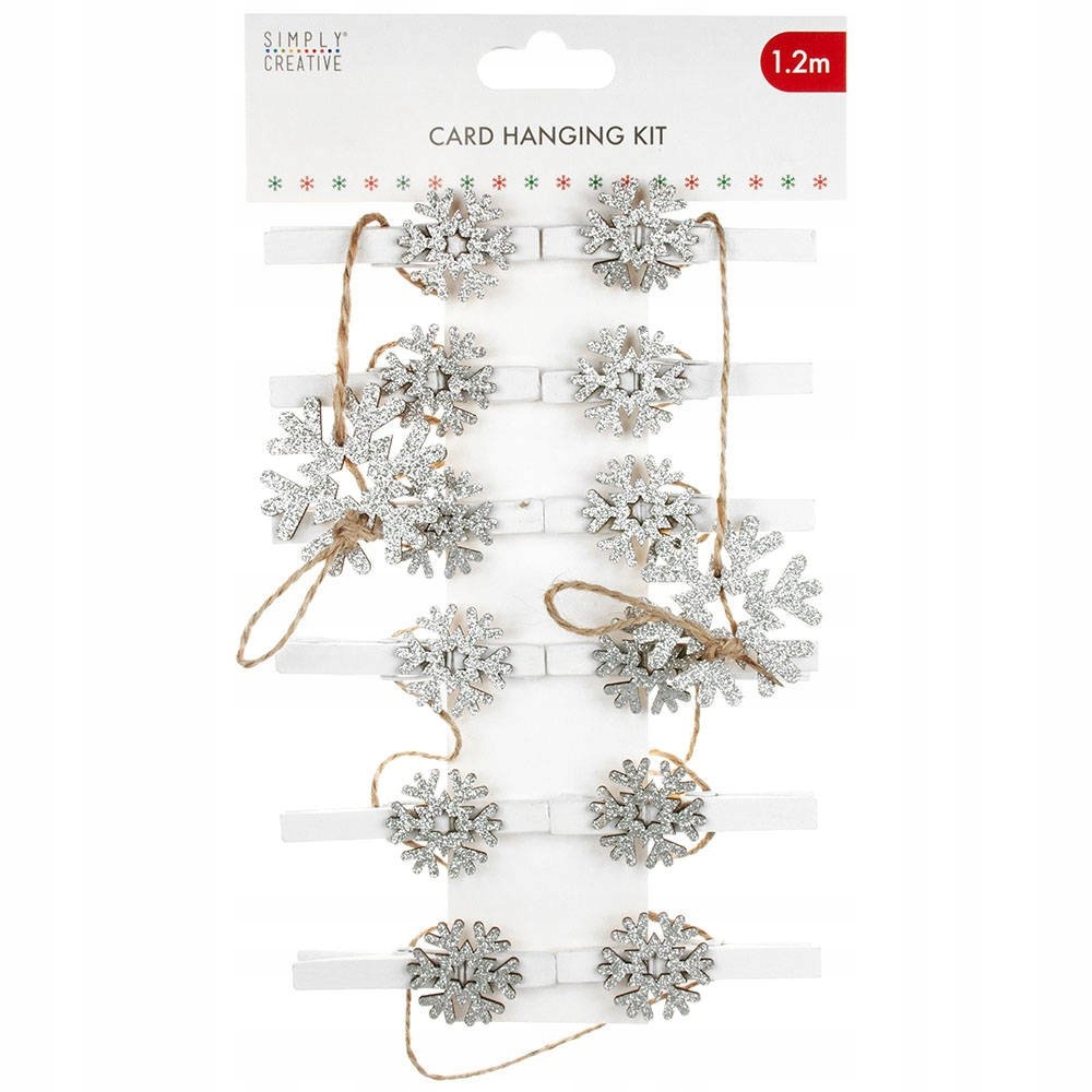 Гирлянда состоит из двух начальных снежинок с серебряными блестками и 12 белых скрепок со снежинками
