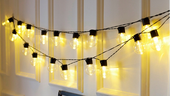 Гирлянда создает приятный атмосферный свет, который хорошо смотрится на балконе, террасе, в саду или дома. Его длина составляет 6 метров, и в нем установлены 20 лампочек в винтажном стиле, которые светятся теплым цветом. Питание от аккумулятора позволяет повесить его где угодно - без кабелей и удлинителей.