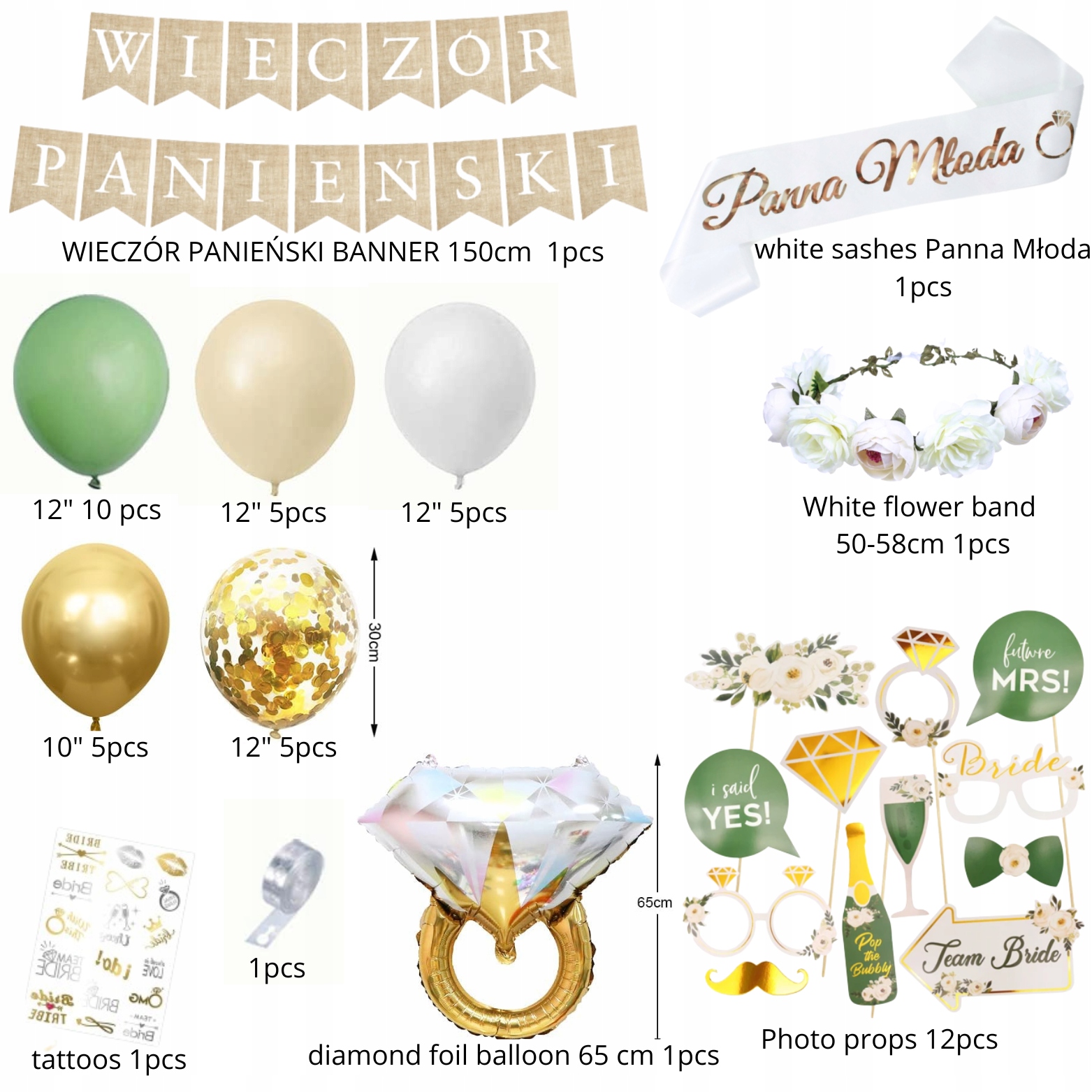 Набор для девичника, включающий воздушные шары, баннер для девичника, белый пояс, венок, татуировки и фотогаджеты, является идеальным дополнением для организации незабываемого и уникального праздника. стороны. Воздушные шары можно прикреплять к стенам или плавать, надувая гелием. Пояс и венок выделят невесту среди всех участников вечера. Татуировки будут выделяться из толпы и будут видны на фотографиях!