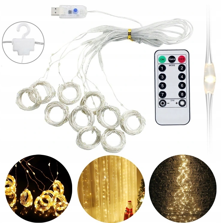 ГИРЛАНДНАЯ СВЕТОВАЯ ЗАВЕСА СВЕТОДИОДНАЯ 3Х3М ТЕПЛЫЕ БЕЛЫЕ РОЖДЕСТВЕНСКИЕ ОГНИ
