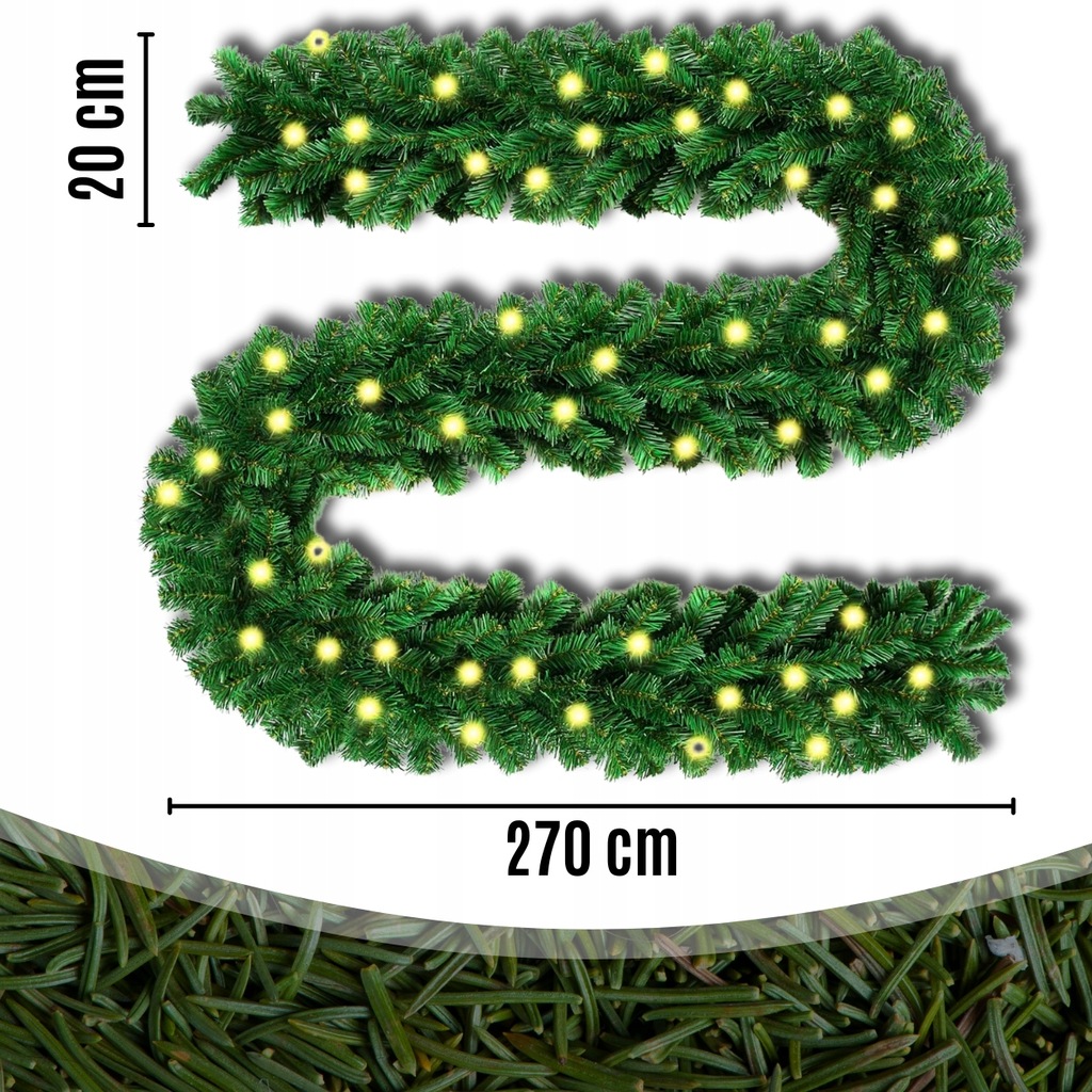 🎄 ИСКУССТВЕННАЯ РОЖДЕСТВЕНСКАЯ ГИРЛЯНДИЯ 270 СМ СО 100 СВЕТОДИОДАМИ - ТОЛСТАЯ И ЭФФЕКТИВНАЯ