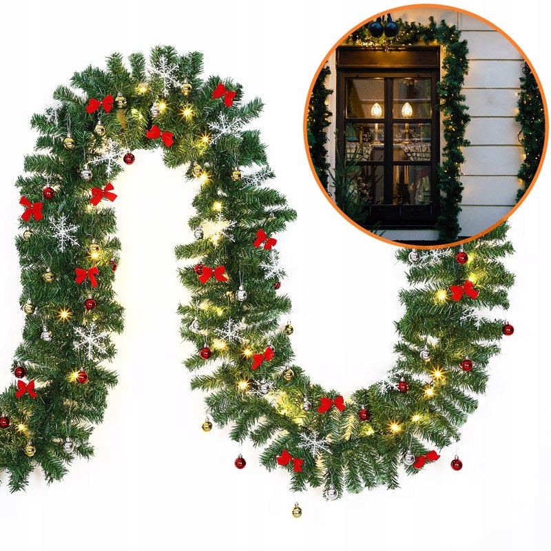 Этой 10-метровой гирляндой вы сможете не только украсить окна, но и использовать цепочку в качестве новогоднего украшения перил, дверей и каминов. Гирлянда из искусственной ели – прекрасное и чистое решение для зимнего украшения. Декоративная цепочка имеет 160 светодиодов, которые помогут создать праздничную атмосферу в вашем доме. Наслаждайтесь праздничной атмосферой с помощью нашей гирлянды, украшенной снежинками, фенечками и бантиками, а также 160 светящимися светодиодами.