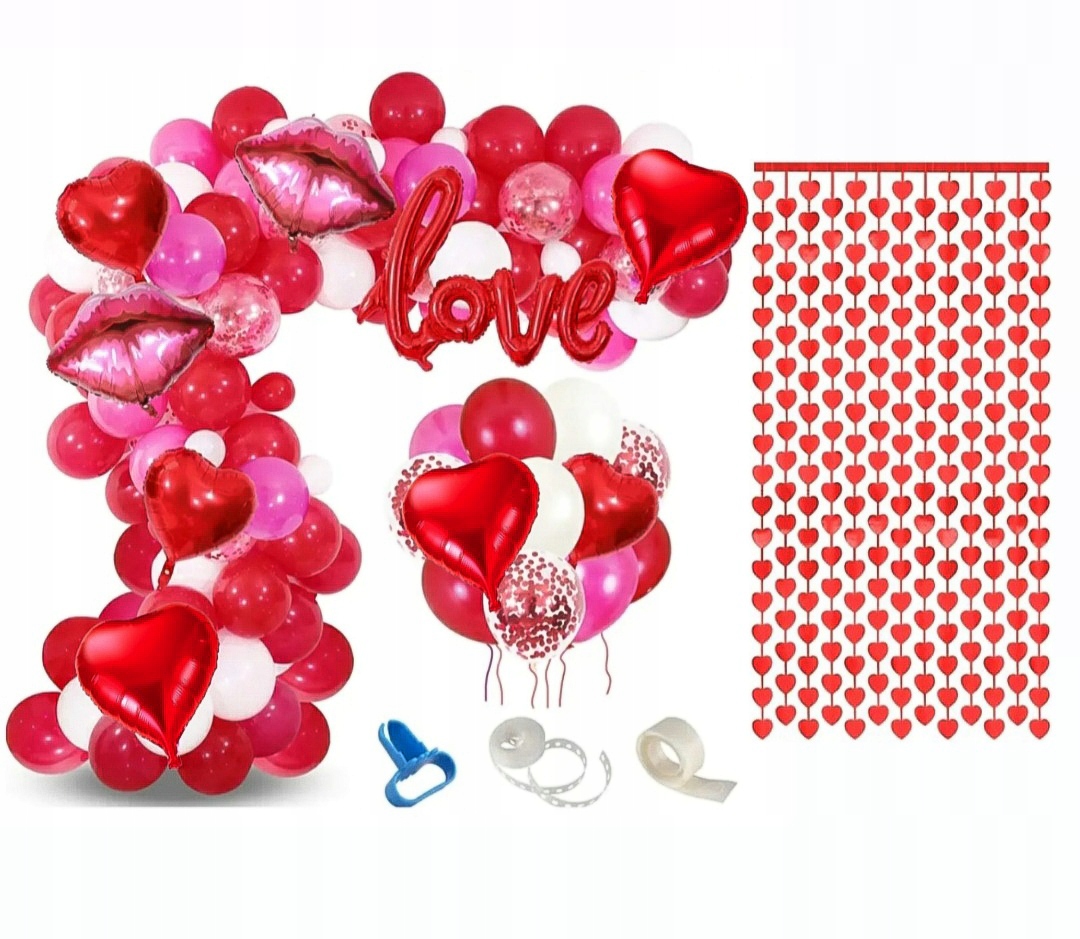 - красные, розовые, белые и прозрачные латексные шары с красными конфетти.
