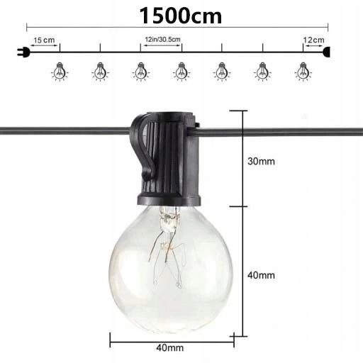 ГІРЛЯНДИ САДОВІ ЛАМПИ 50 ДВОРІК БАЛКОН ТЕРАСА 15м