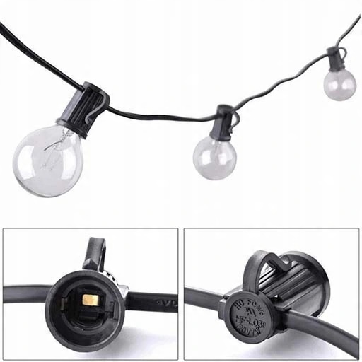 Каждое гнездо оснащено зажимом, что позволяет подвешивать гирлянду без дополнительных зажимов. Гирлянда полностью адаптирована к любому способу подвешивания, хотите ли вы подвешивать ее за каждую точку? Нет проблем! Это делает установку более гибкой и адаптированной к вашим потребностям.