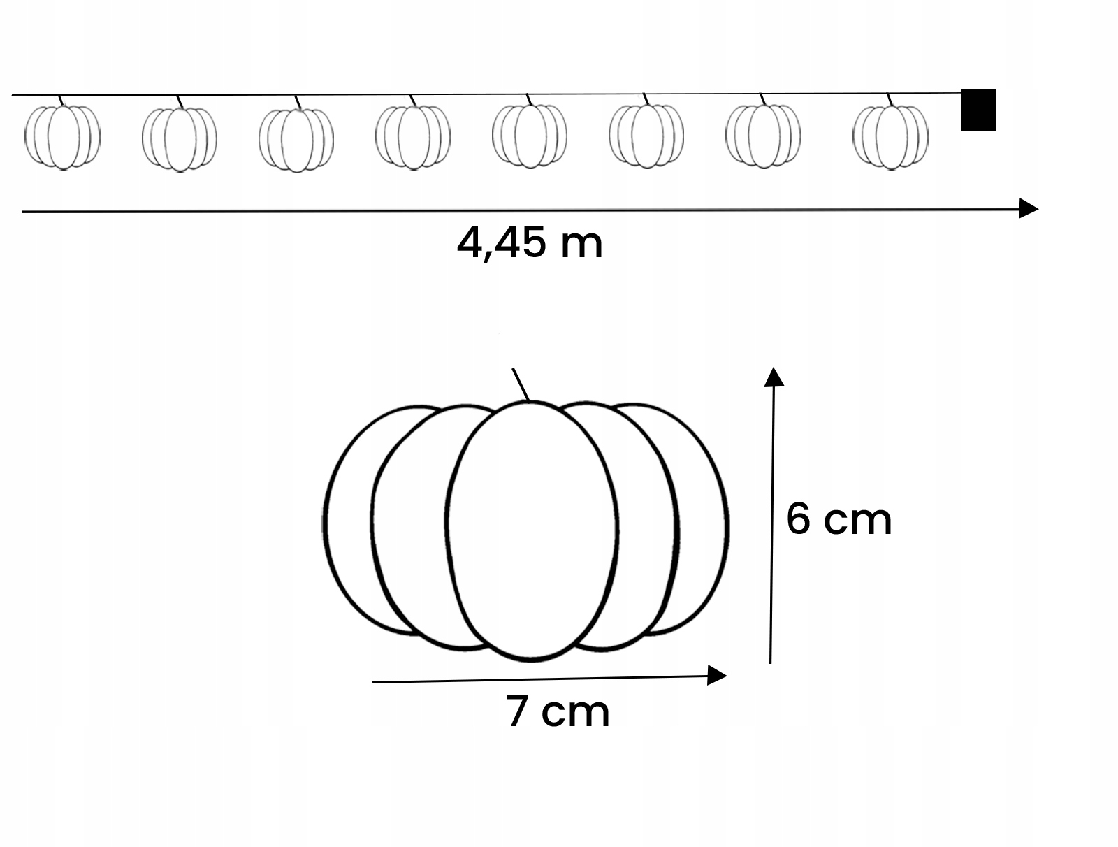 СВЕТОДИОДНАЯ ДЕКОРАТИВНАЯ ГИРЛАНДА ДЛЯ ХЭЛЛОУИНА, 8 шаров, 4,45 м, IP65, 3xAA + USB C, Цепочка ТЫКВЫ