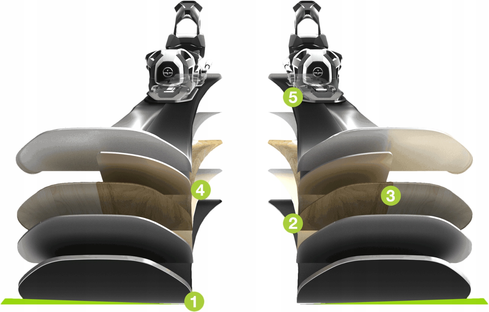 Технология конструкции боковин, используемая в лыжах для соревнований и инструкторов. Вертикальная боковина гарантирует сцепление кантов по всей длине лыж и прямую передачу энергии лыжника к кантам на высоких скоростях.