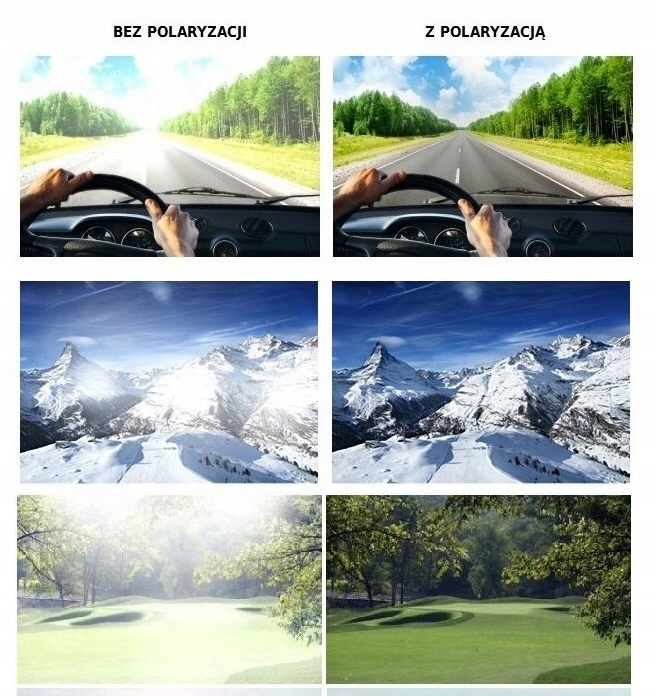 Они блокируют поляризованный свет, отраженный от горизонтальных поверхностей (снег, вода, дорога), сводя к минимуму воздействие всех типов раздражающих отражений или блеска.