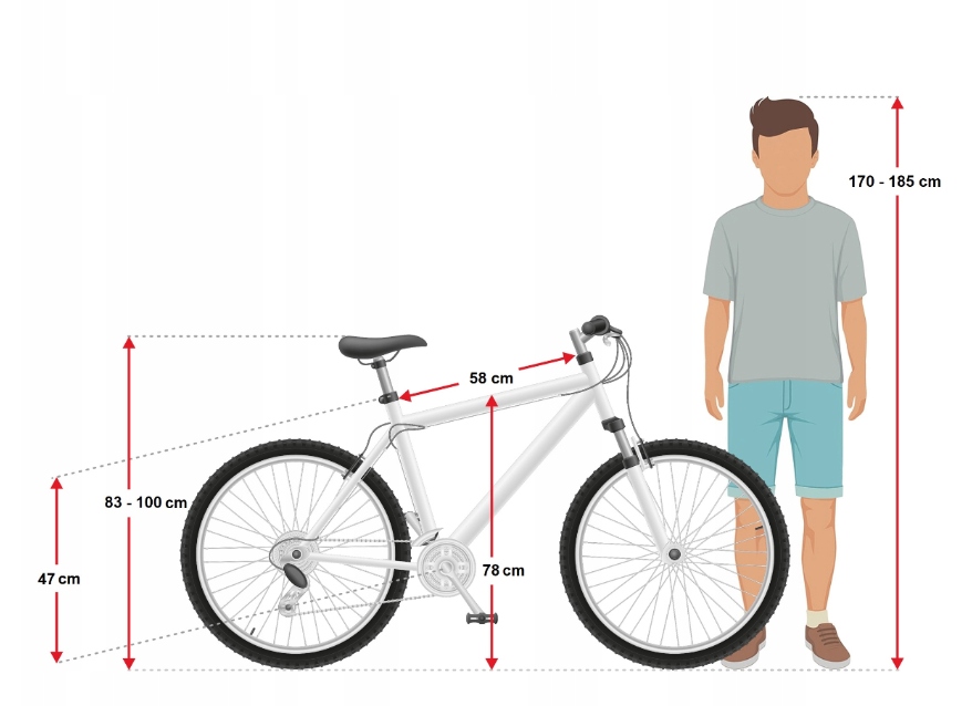 Благодаря размеру шин велосипед подходит на рост 170-185 см.