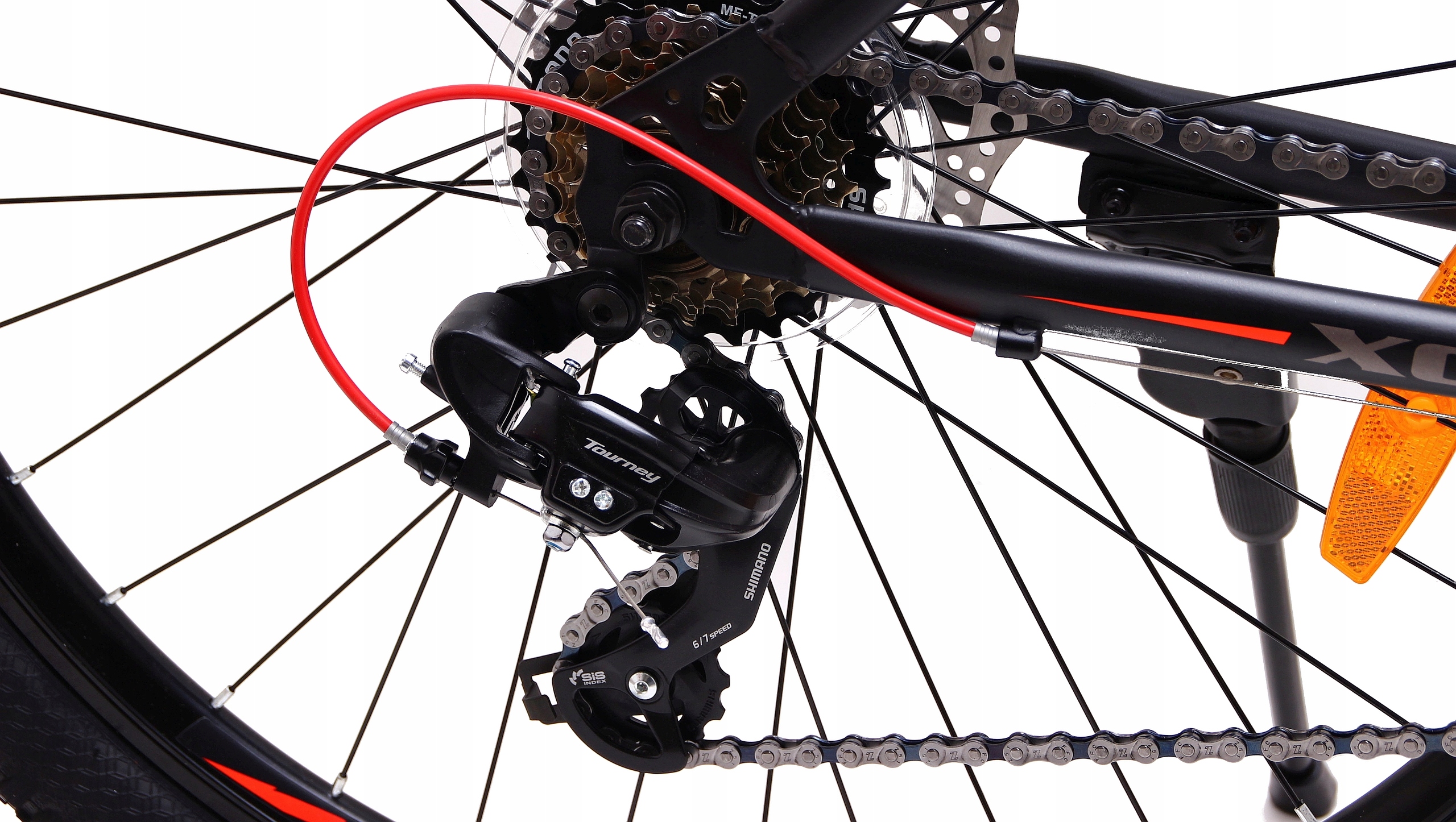 Задний переключатель Shimano Tourney 7 — скорость — позволяет использовать 21 передачу.