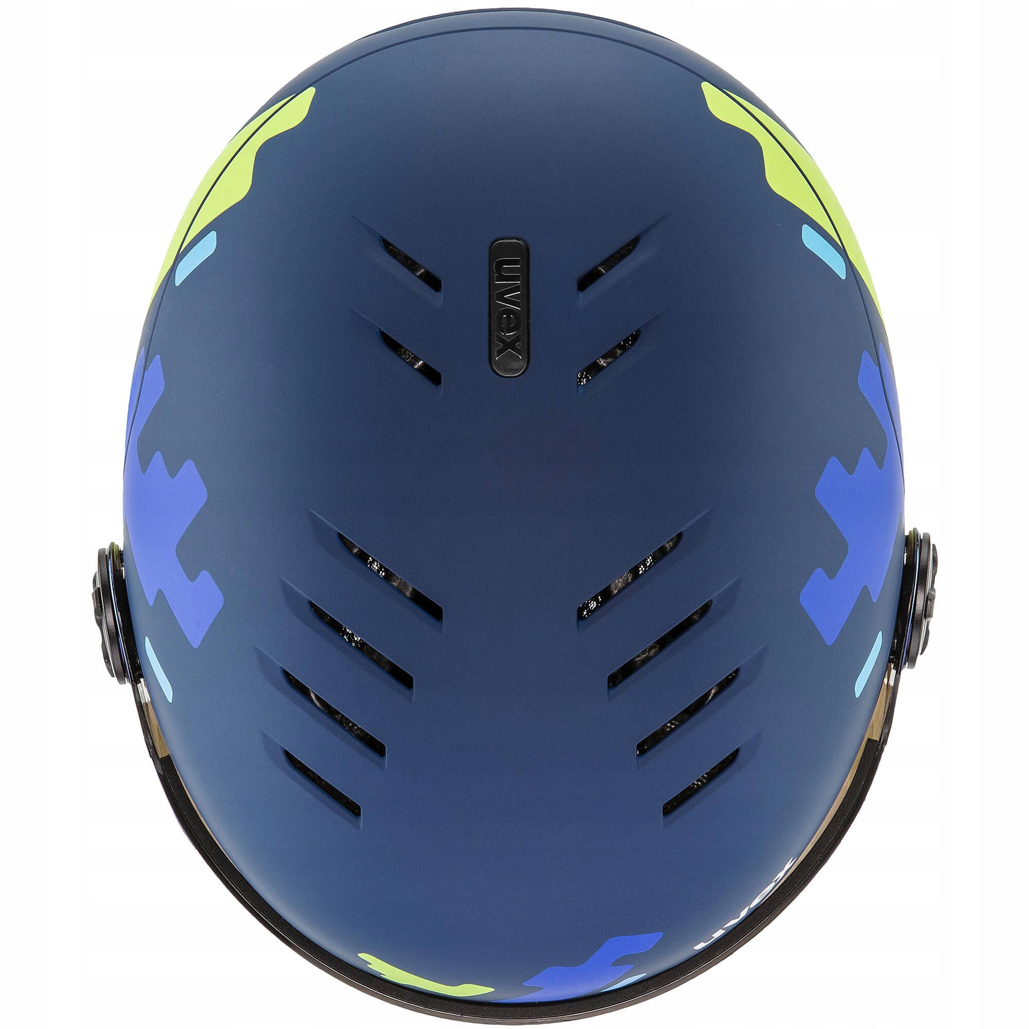 Лыжный шлем Uvex Rocket Jr Visior Junior со СТЕКЛОМ Тетрис синий 54-58см M