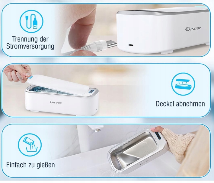 Современная ультразвуковая стиральная машина Gisaae - это устройство, которое обеспечивает быстрое и точное удаление грязи даже из самых сложных мест. Благодаря технологии ультразвуковых волн с частотой 46 кГц, которые производятся микро -карщинами, которые проникают в щели и уголка, эффективно растворяя грязь, жир или отложения. Очистка происходит равномерно в полном диапазоне 360 ° , что гарантирует высокую эффективность без необходимости очистки или использования острых химических веществ.
