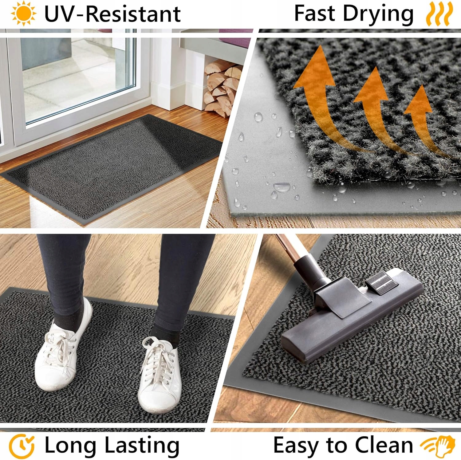 - Водонепроницаемый и не -скользящий коврик: конец с лужами или скользкими входами! Чрезвычайно впитывает, но водонепроницаемый материал наших серых дворников поглощает влагу, как губку, чтобы сохранить вход в чистоту и сухость в дождливые дни. дворники перед кухней или как коврики в спальню. Наш ковер для двери, изготовленный из высококачественных полипропиленовых волокон, является первым выбором для ковров с высокой производительностью