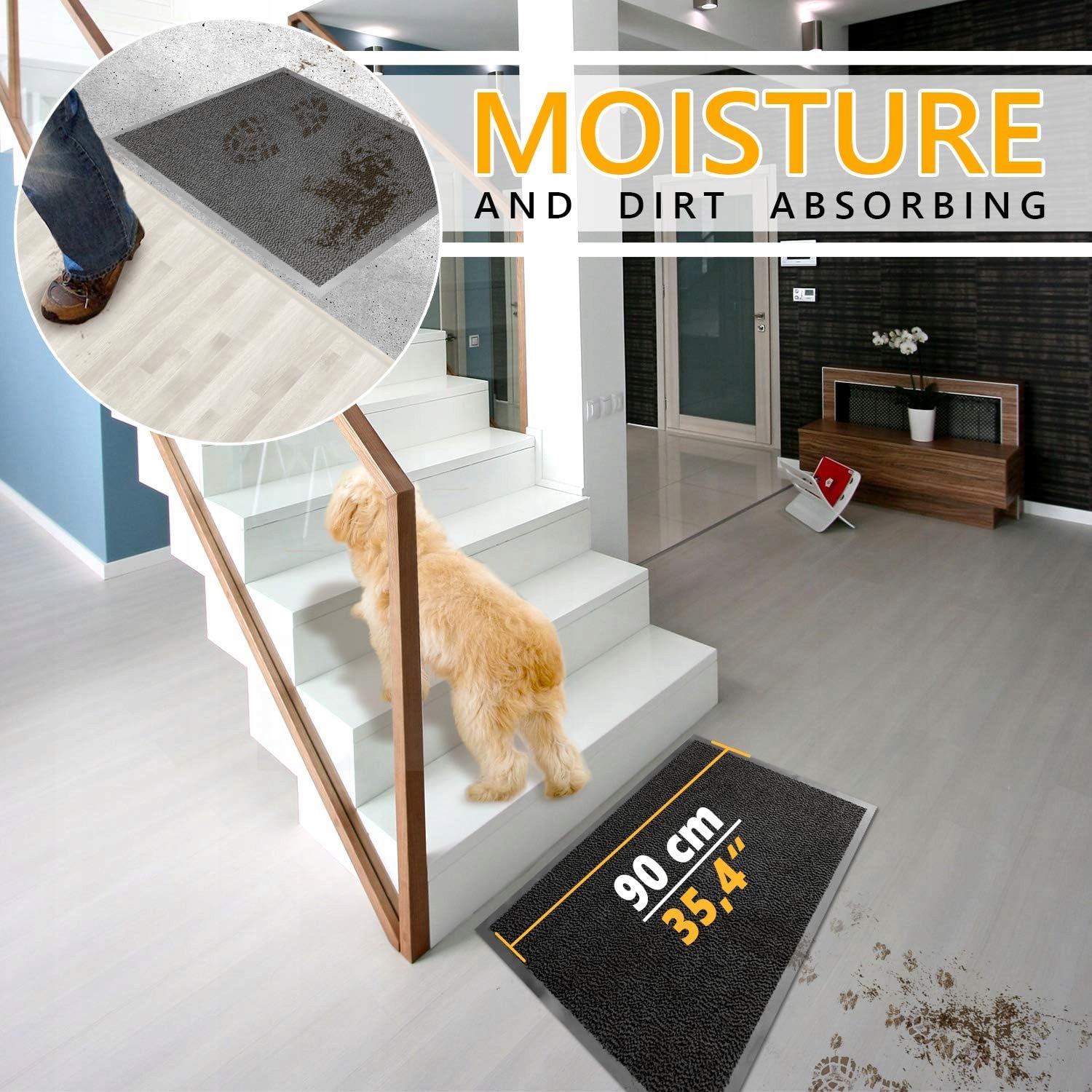 GADHOME Wiper, водонепроницаемый, подходящий для промывки, устойчиво к грязи, не -скользящий стеклоочиститель к входной двери, коридор, кухня, спальня, 90 x 60 см