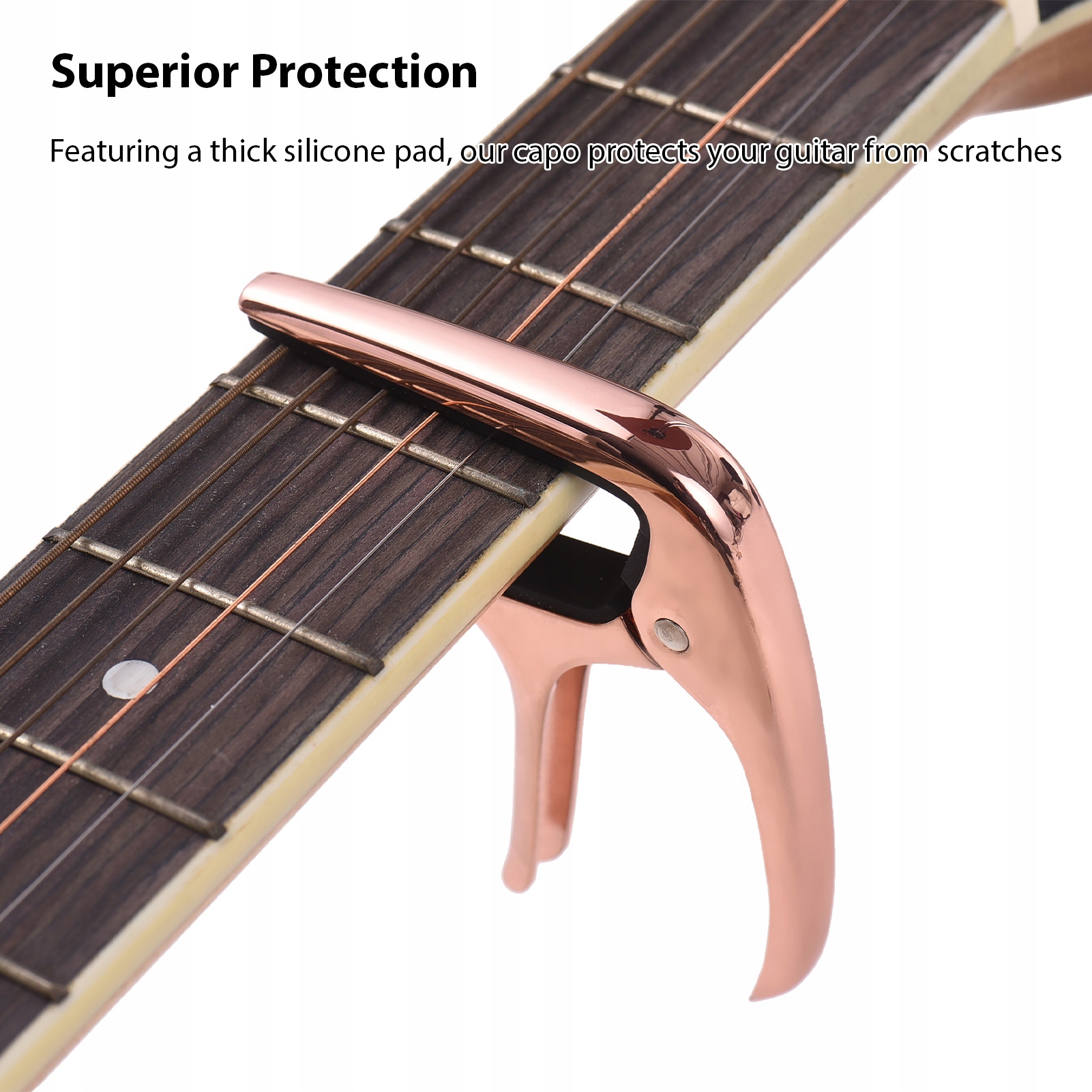 3. Идеальная защита: наш каподастр с толстой силиконовой накладкой защищает вашу гитару от царапин и запахов. Умеренная твердость обеспечивает сильное давление на струны, что делает его идеальным каподастром для акустических гитар.