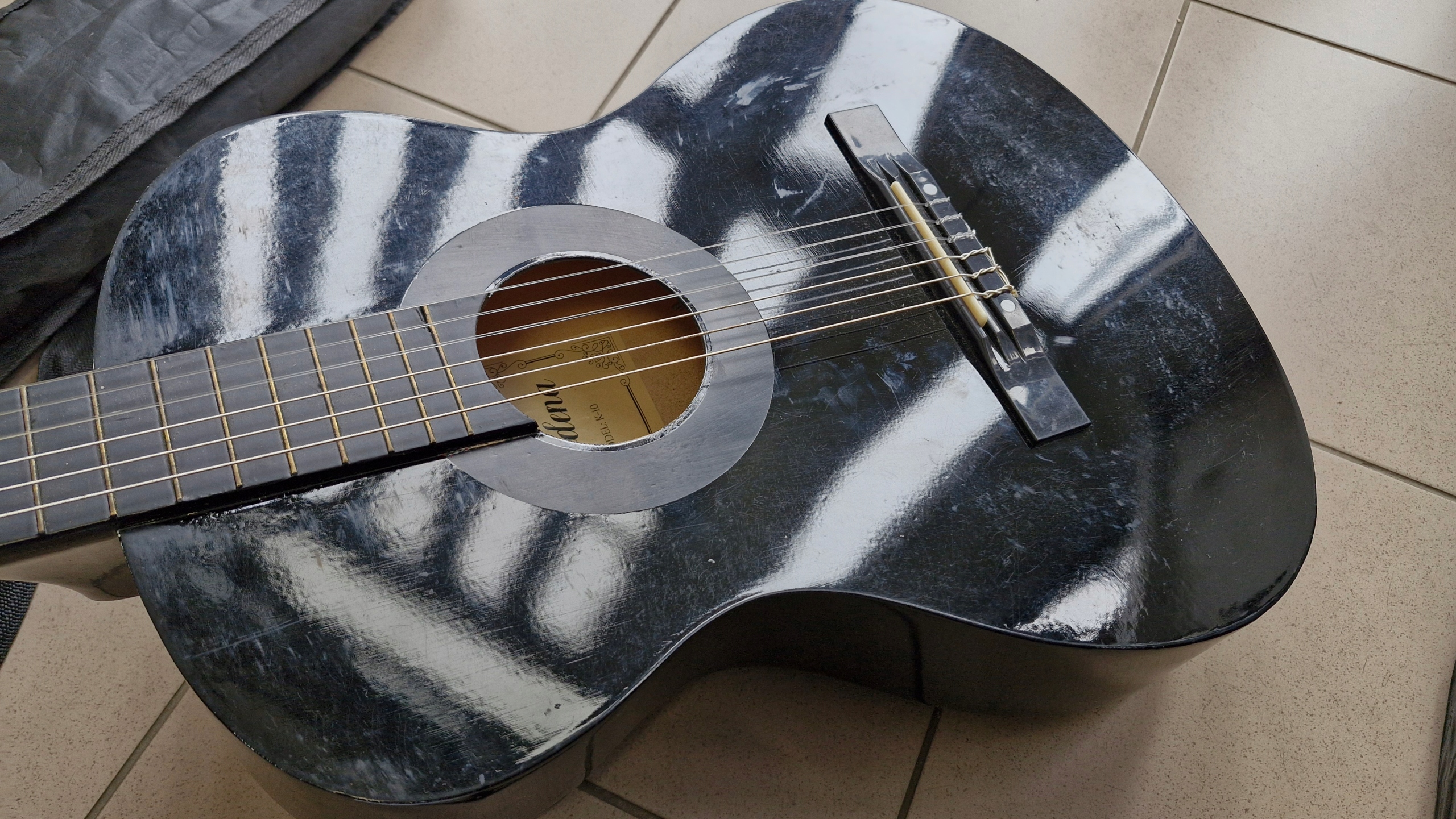 Я должен продать классическую гитару Modena K-10 с Black Cover Guitar в хорошем состоянии. В всей коробке нет трещин. Гитара имеет нормальные признаки использования. Визуальное состояние можно увидеть на картинках. Простая Гриффин, коробка имеет царапины и обитана в одном месте. Вся крышка. Состояние видимо на картинках.