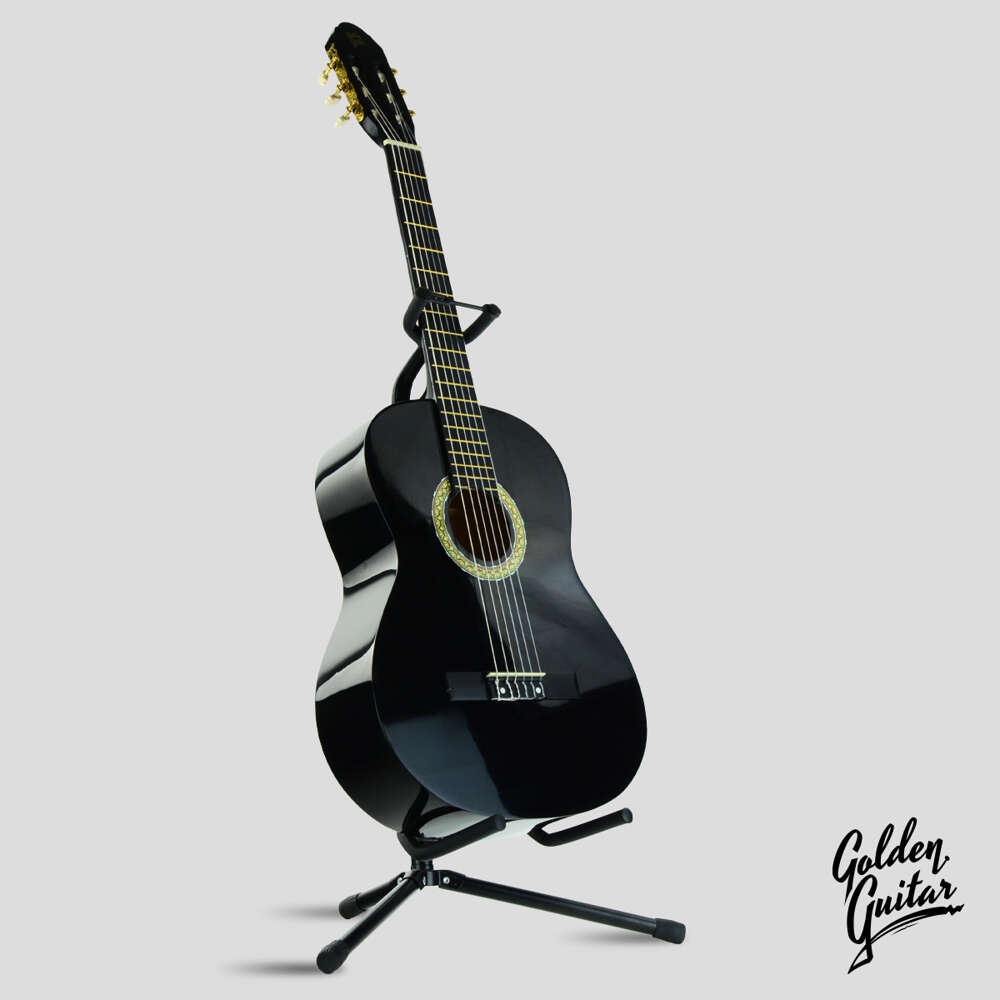 Классическая гитара 4/4 39 "Черная золотая гитара+ аксессуары+ штатив пол