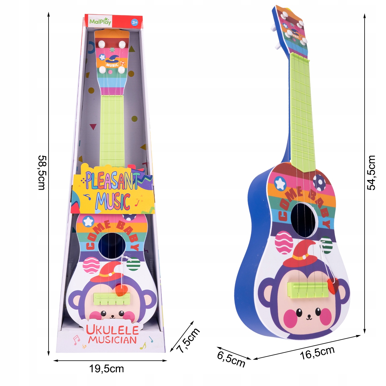 ГІТАРА УКУЛЕЛЕ ДИТЯЧА, КОЛЬОРОВИЙ ІНСТРУМЕНТ, МАВПА, МЕТАЛ, 4 СТРУНИ