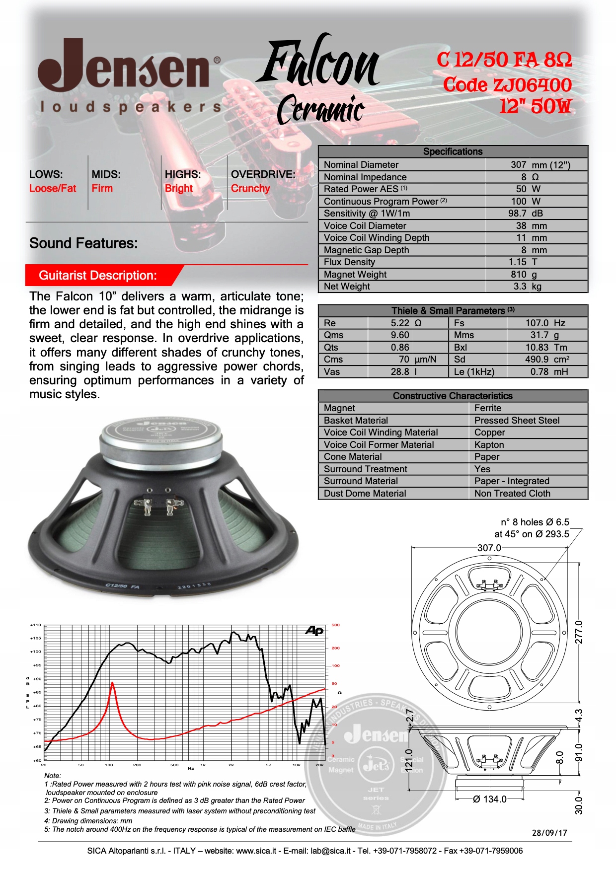 JENSEN JC12-50FA 12-дюймовый динамик FALCON