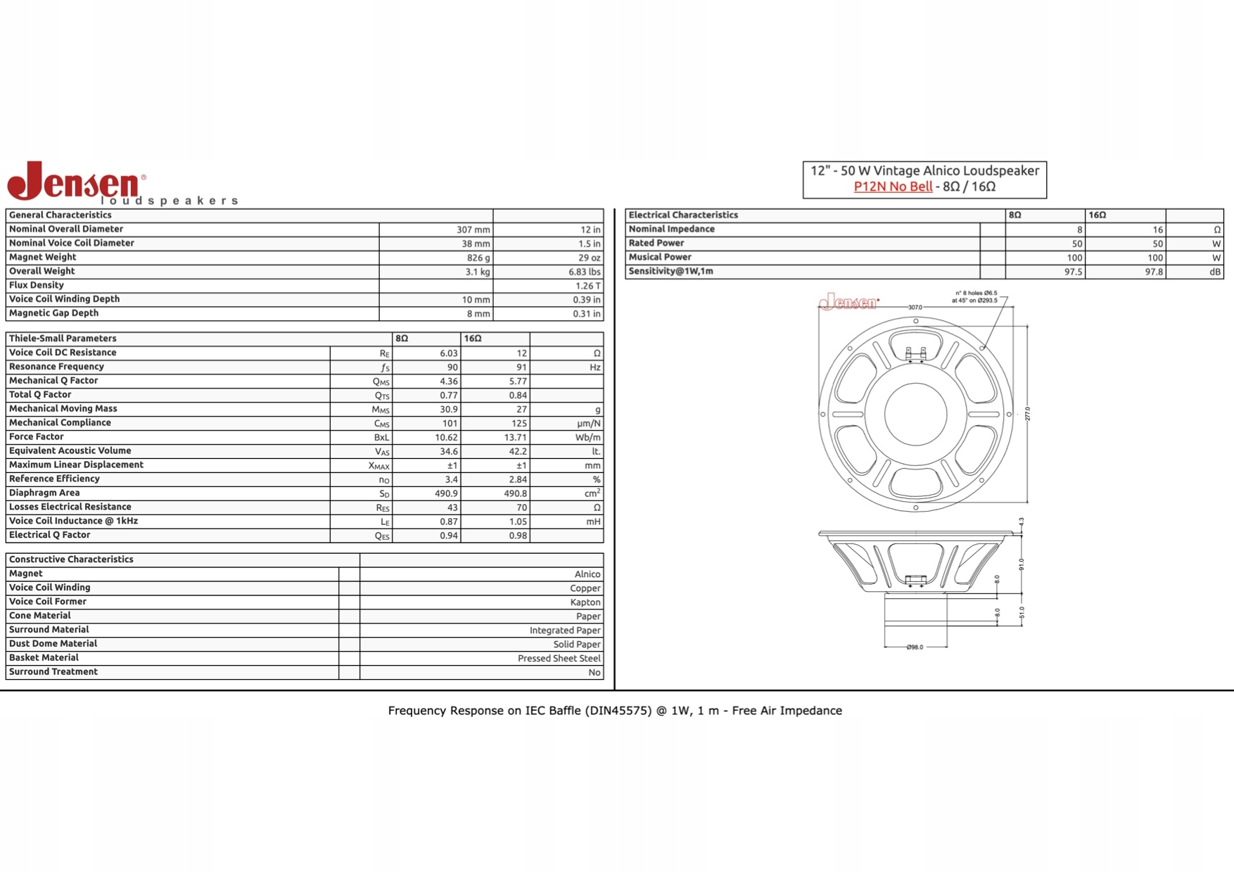 Гітарний динамік JENSEN P12N NO BELL 12″ 16 Ом