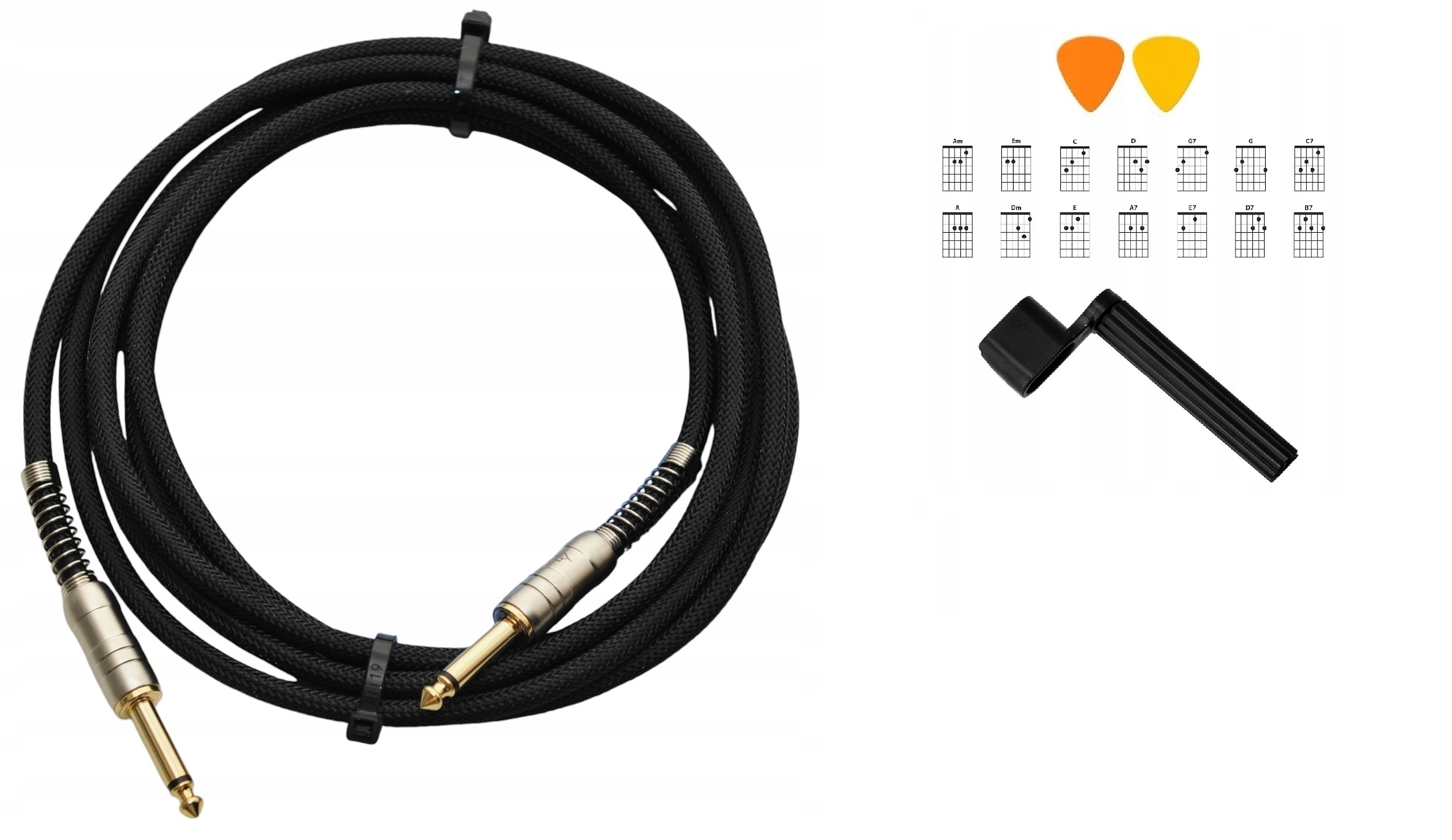 ГІТАРНИЙ КАБЕЛЬ З ОПЛЕТОЧЕННЯМ 3 М, ПОЗОЛОЧЕНІ ГНІЗДА + РУЧКА + Бонуси