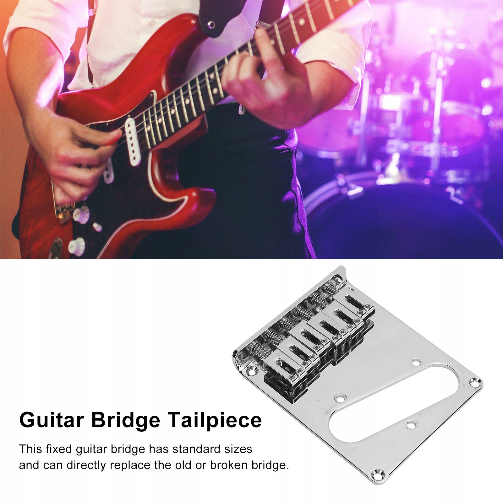 Функция: 1. [Металлический материал] Постоянный гитарный мост изготовлен из превосходного металлического, прочного и долговечного материала, нелегко деформировать.