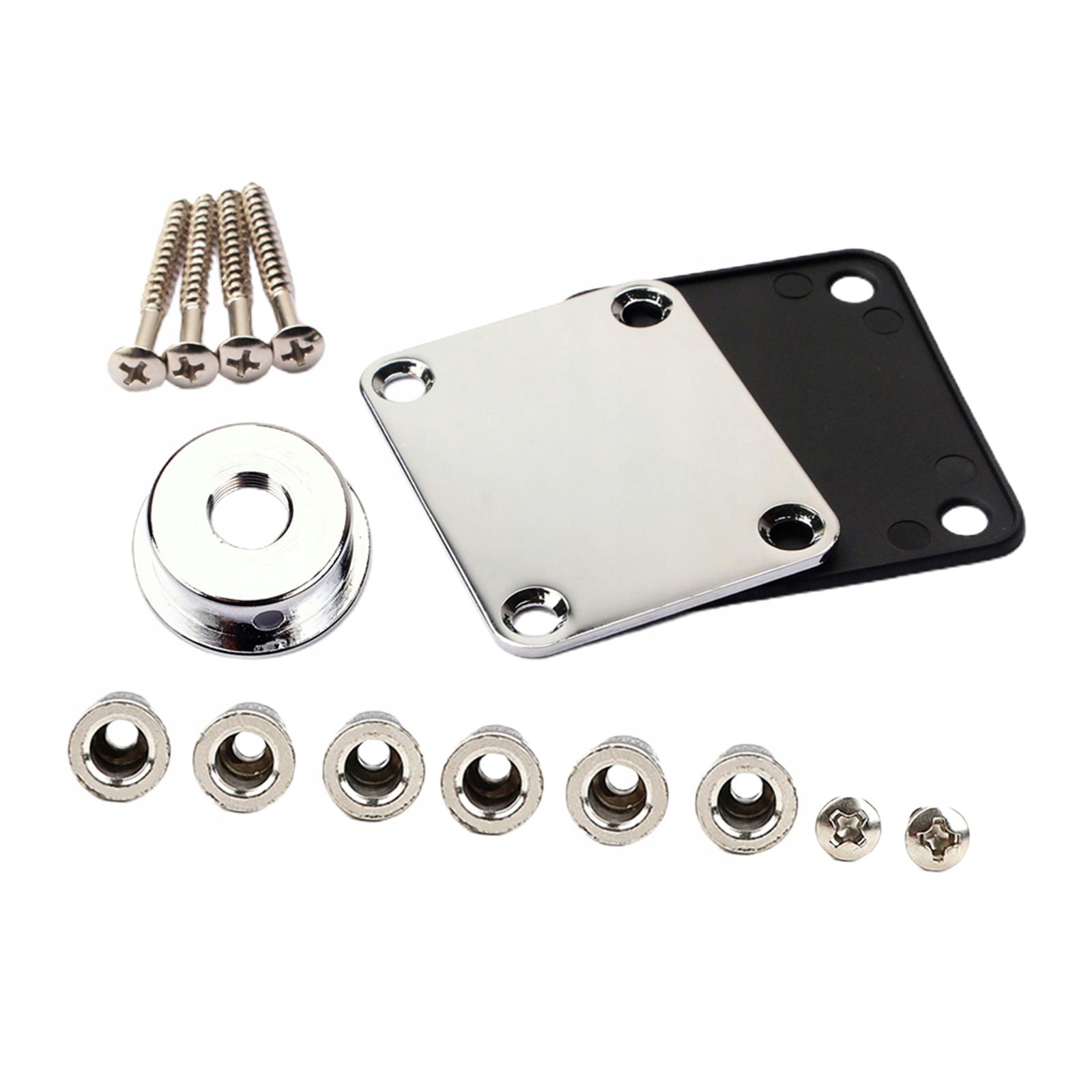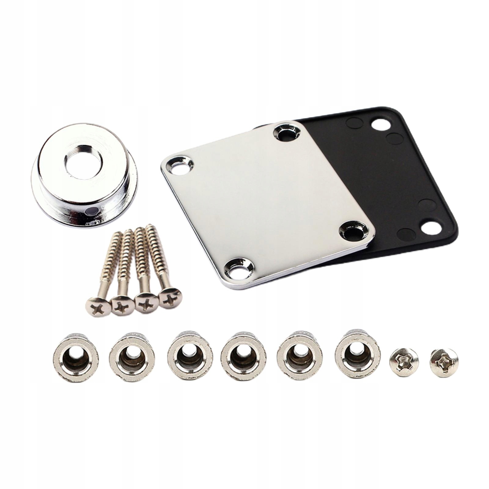 [Список упаковки]: 2 пластины для шеи гитары, 6 фиксаторов для струнных деревьев, 1 гнездо для гитары, 6 монтажных винтов.