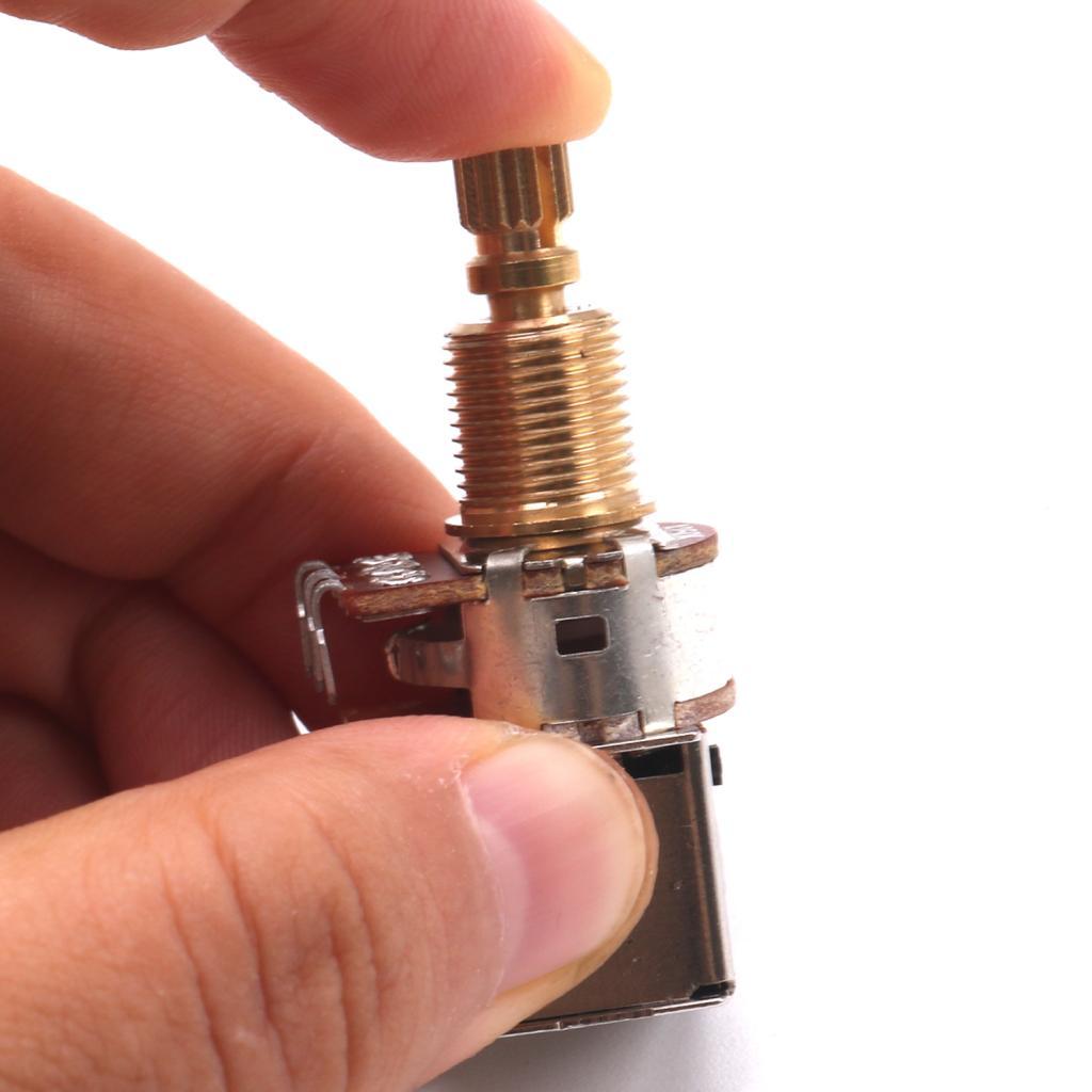 Нажмите/тянет потенциометры с наклоном катушки. Длина песка 17 мм, подходит для всех стандартных выборочных отверстий диаметром 7 мм. Потенциометр гитары