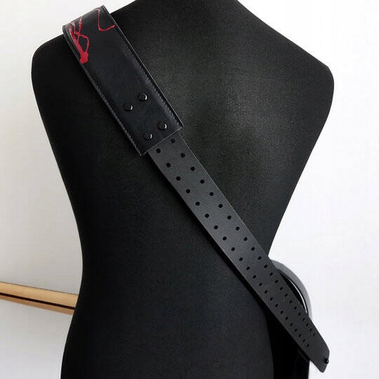 Уникальным элементом этого пояса является рисунок ручной работы «всплеск крови», который делает каждую копию уникальной и привлекает внимание. Следует за ремнем, который увеличивает комфорт использования, а регулировка длины выполняется с использованием системы скольжения, что облегчает ее соответствие.