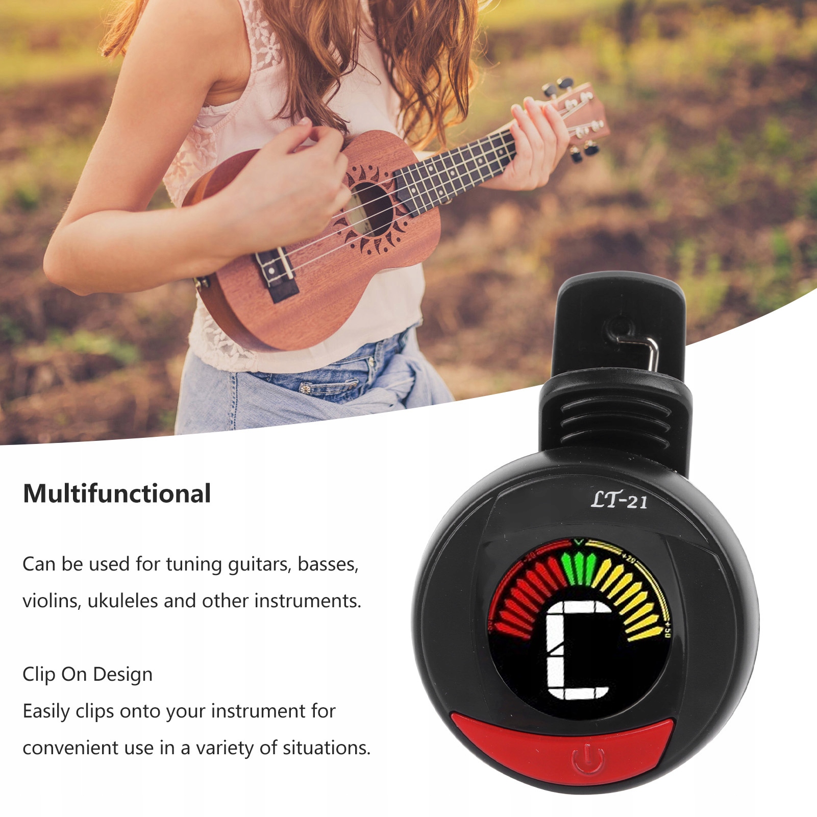 4. Зажим на дизайне: этот тюнер имеет клип о проекте, который, внимательный, перегружает ваш инструмент для использования в различных ситуациях.