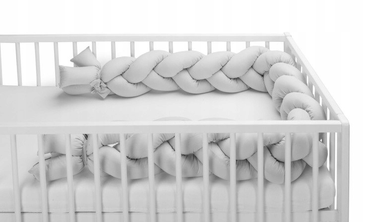 Оплетка - Защитная пленка для кровати Sensillo приятная на ощупь и мягкая. Он изготовлен из хлопка и противоаллергенного силиконового шарика. К концам каждой косы добавляются ленты, чтобы закрепить ее на кровати. Привязав тесьму к кровати, вы обеспечите ребенку безопасный и спокойный сон. Тесьма также послужит детским гнездышком, украшением комнаты или изоляцией от холодной стены.