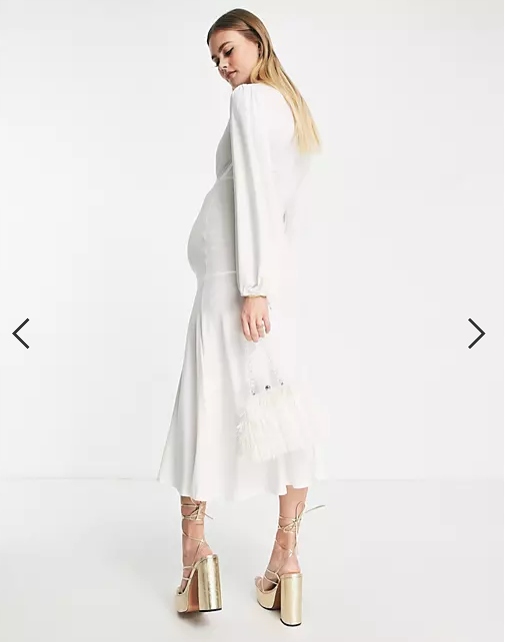 ГЛАДКА СУКНЯ МІДІ ДЛЯ ВАГІСЛІВ ЕКРЮ РОЗМІР M 595