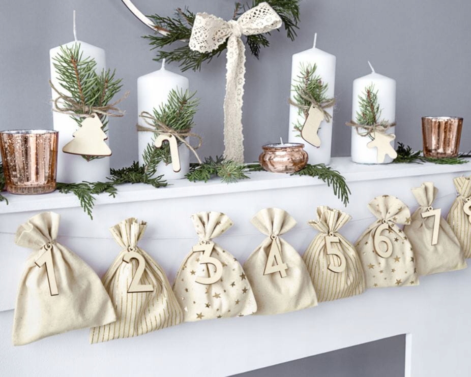 Гладкий джутовий мішок, адвент-календар, 11х14 см, джутовий мішок