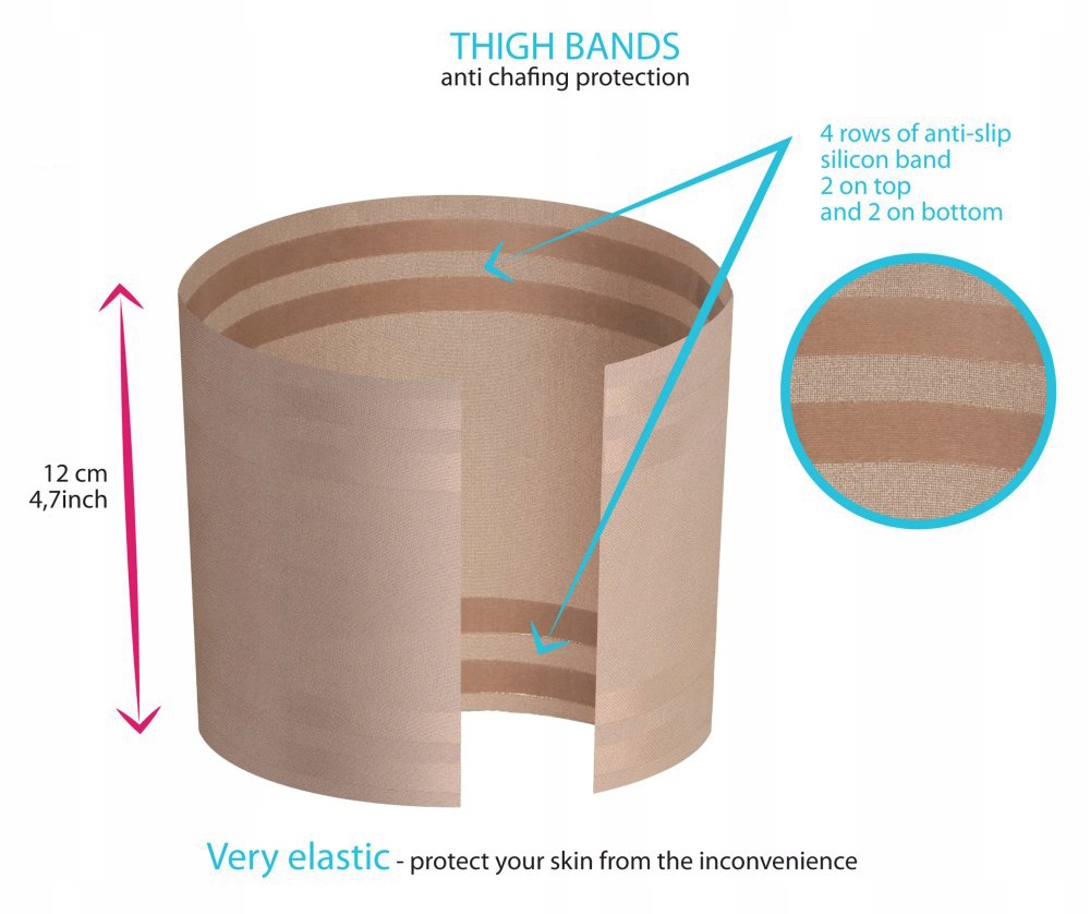 Satin Thight Band - сенсационная группа бедер, предназначенная для людей, борющихся с неприятными бедрами. Благодаря нашим группам, проблема исчезает, и вы снова чувствуете себя комфортно в теплые дни. Продукт изготовлен из высококачественного трикотажа шириной 12 см. Благодаря двойным полосам силикона на верхних и нижних концах, полоса идеально прилипает к бедру и не скользит. бедра):