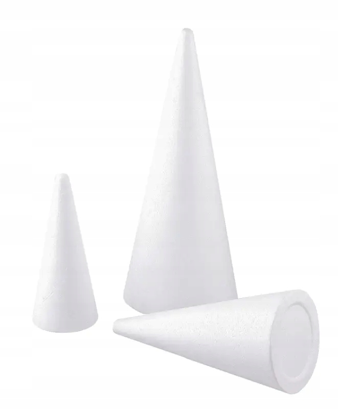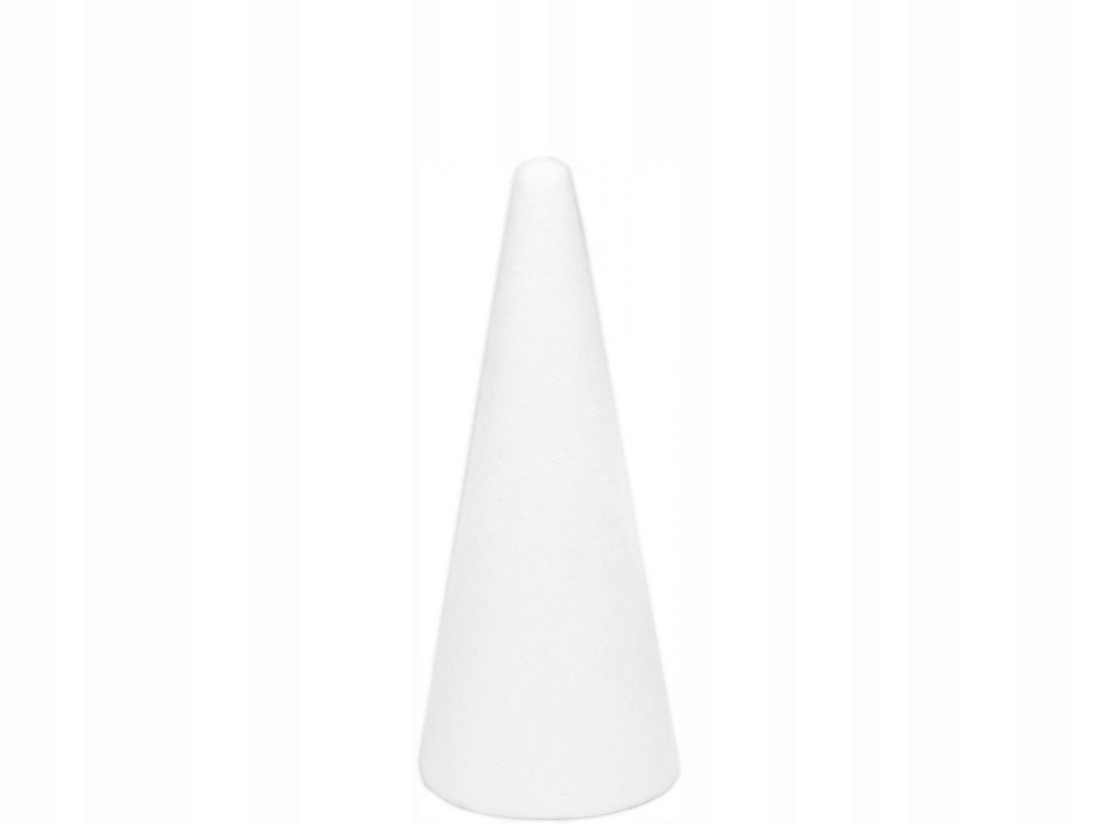 12 см высотой пенопластовой конус, диаметр основания 5 см. Объект очень твердо изготовлен, плотный полистирол, хорошо компактный. Продукт, изготовленный в Польше.