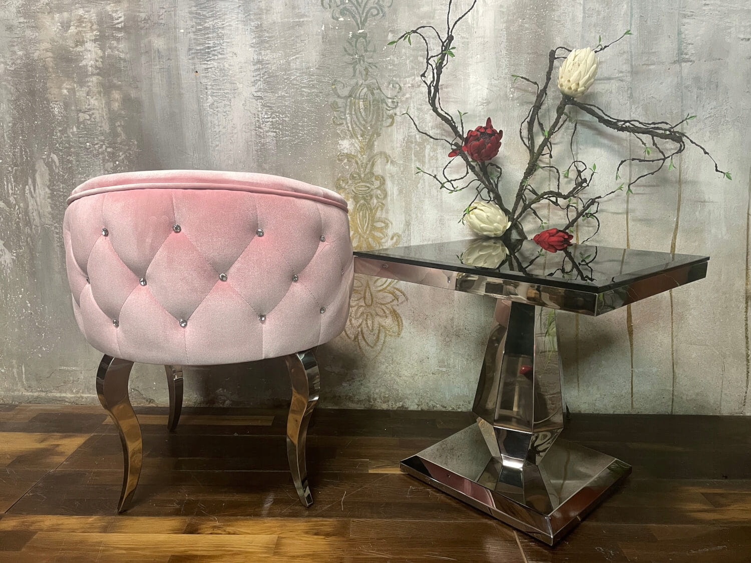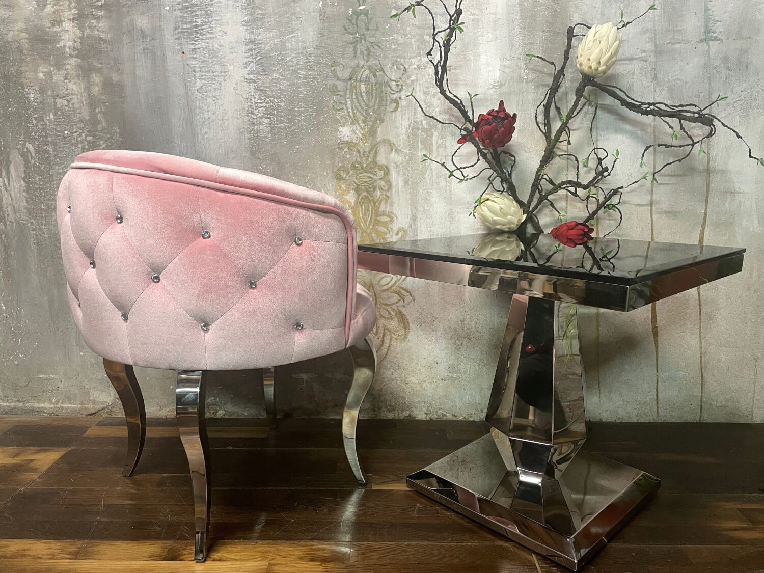 Это также будет вышеупомянутое розовое гламурное кресло. На первый взгляд он выделяется уникальной формой, напоминающей старые времена - он вводит некоторую вневременную элегантность и стиль. С другой стороны, порошкообразный розовый цвет стула отвечает за сильную ноту романтизма и класса. Серебряные, блестящие, игривые сумасшедшие ноги ног, в свою очередь, несут ответственность за сияющий стиль и сложный класс.