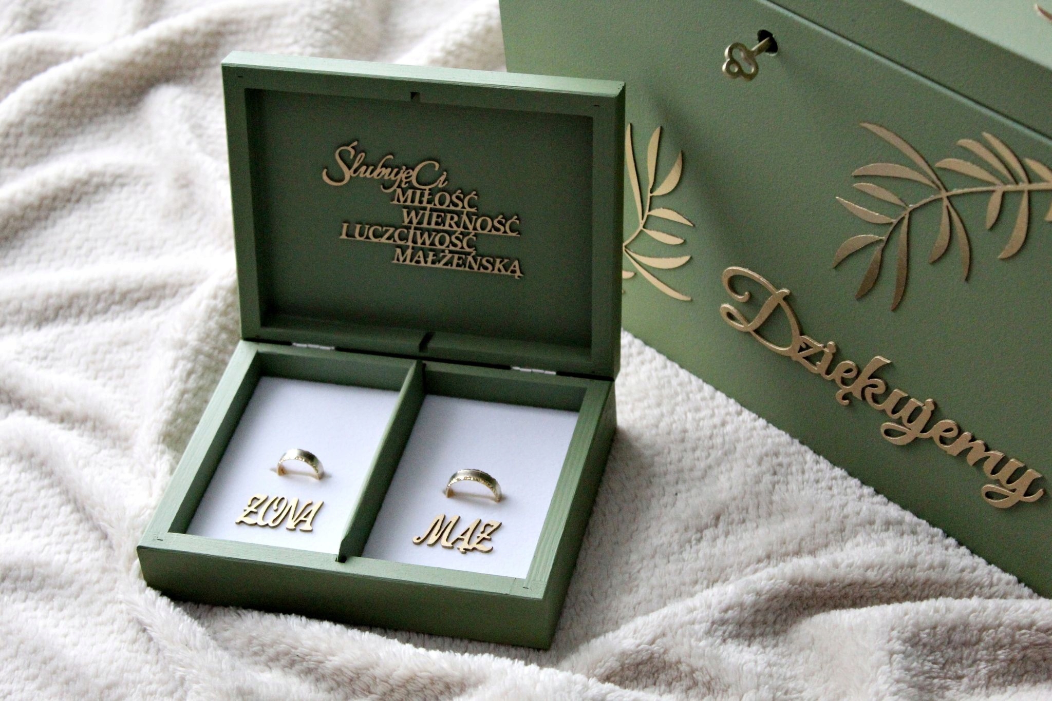 Шкатулка для обручальных колец оливкового цвета, расписанная вручную.