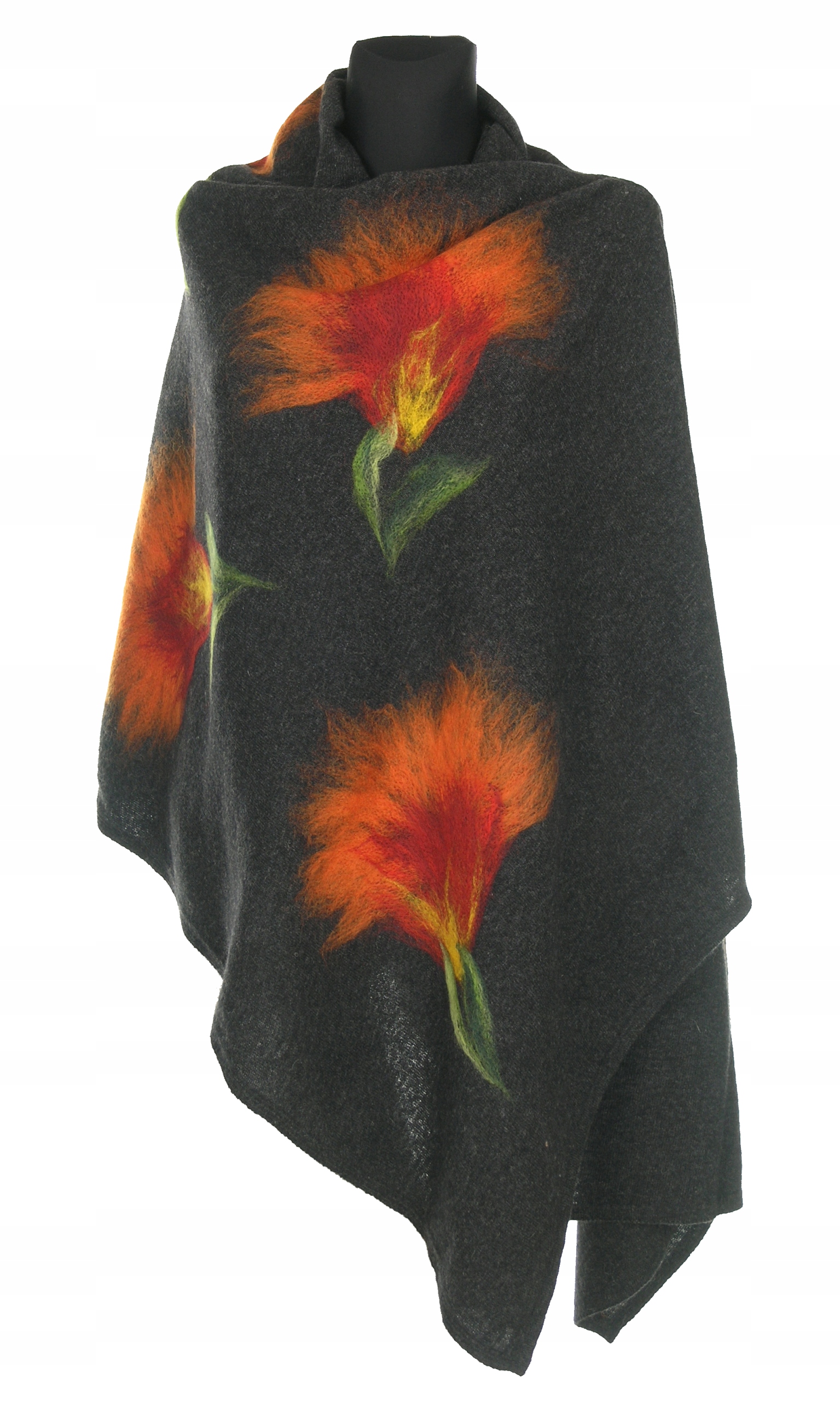 ГЛАМУРНЫЙ ШАРФ С РУКОВОЙ ВЫШИВКОЙ 80% ШЕРСТЬ ЯГНЕНКА