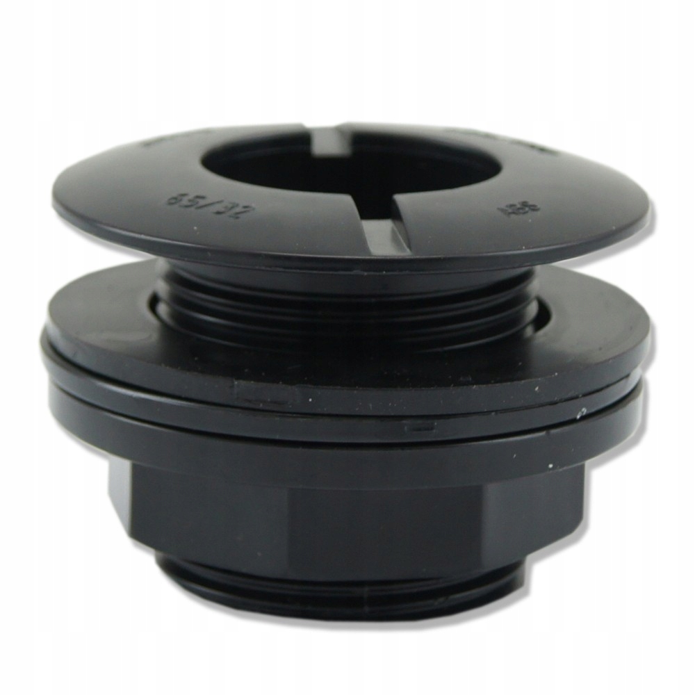 Проход из АБС-пластика обеспечивает соединение ПВХ-установки со стенкой резервуара и имеет силиконовое уплотнение. Монтаж облегчается скользящим уплотнителем. Проход соединяется с монтажными трубами с помощью клея ПВХ. Требуемый диаметр отверстия в стекле 43-50мм.