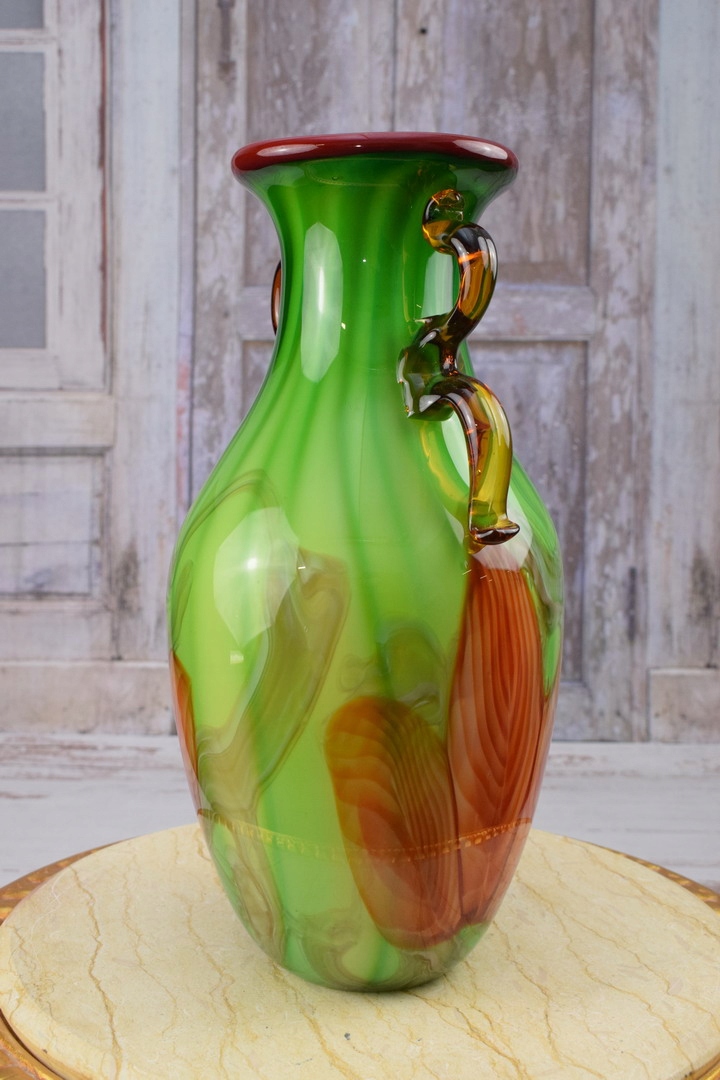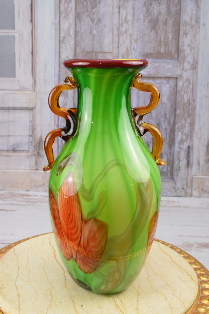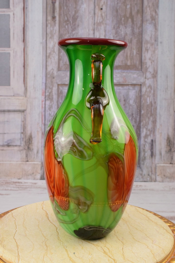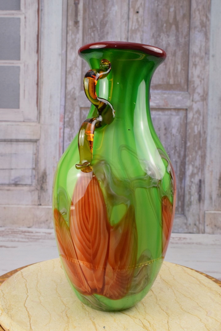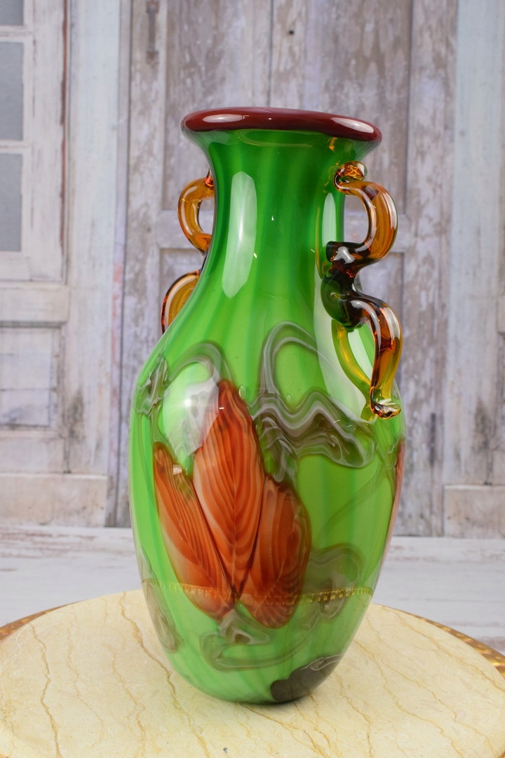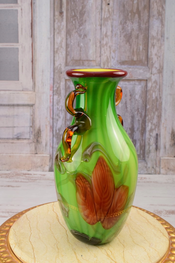 Стекло в стиле Мурано - Ваза зеленая бутылка - Италия - Подарок