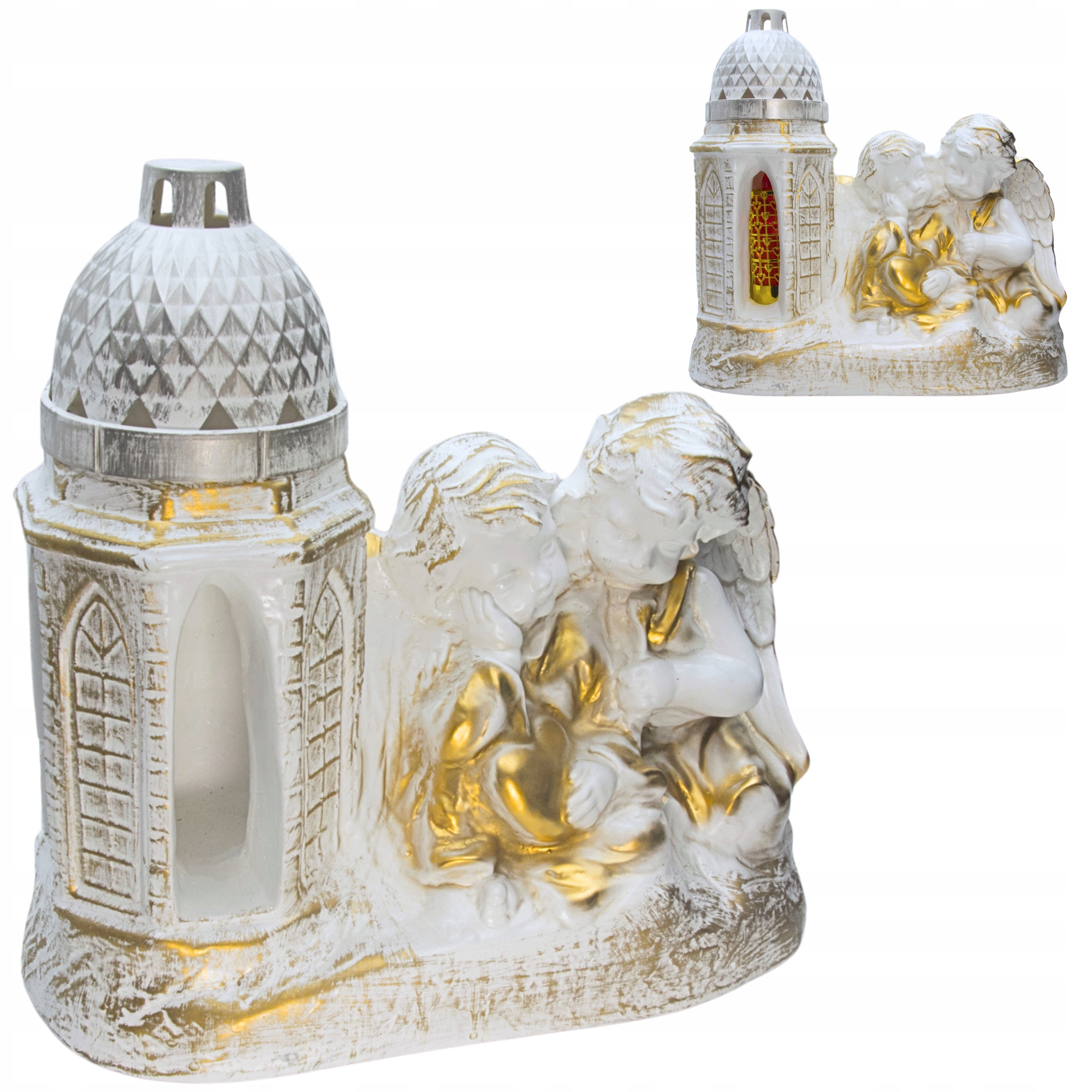 Это не только красивое украшение, но прежде всего символ духовной заботы и памяти. Двойная фигурка ангелочков придает ей еще больший смысл, а прикрепленный фонарь позволяет разместить любой свет, благодаря чему статуэтка будет освещать сиянием памятный участок долгие годы.